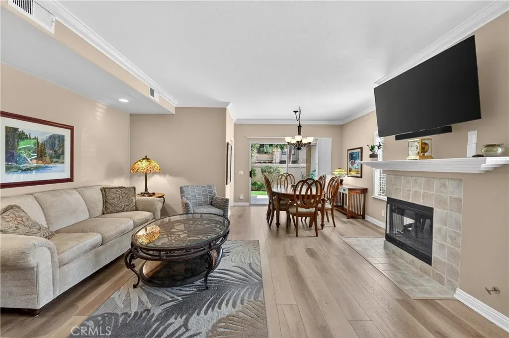 Welcome to 1 Encantado Canyon, a beautifully upgraded single-story end-unit located in the highly sought-after Belterraza community of Rancho Santa Margarita. Ideally situated on the lower level for effortless access, this light-filled residence offers approximately 1,230 square feet of thoughtfully designed living space, blending comfort, functionality, and seamless indoor-outdoor living. Upon entry into an open-concept layout which creates an immediate sense of space and airiness, enhanced by abundant natural light. The main living areas feature luxury vinyl wood-style flooring and are centered around a cozy fireplace, creating a warm and inviting environment ideal for both everyday living and entertaining. The kitchen is tastefully updated with Corian countertops, a modern tile backsplash, and direct access to the expansive wraparound patio—perfect for effortless indoor-outdoor flow. The private, fenced-in yard provides multiple areas to relax, entertain, or enjoy peaceful mornings and evenings. The primary suite offers a tranquil retreat, complete with plush carpeting, dual closets, a beautifully appointed en-suite bathroom, and private patio access highlighted by a mature, fruit-producing lemon tree. A spacious secondary bedroom and full bathroom provide versatility for guests, a home office, or additional living needs. Additional highlights include fresh interior paint, an attached one-car garage with direct access, and a separate detached one-car garage—offering both convenience and valuable additional storage. An interior laundry area further enhances the home’s practicality. Residents benefit from low HOA dues and access to the highly desirable SAMLARC amenities, including resort-style pools, parks, scenic trails, and the exclusive Rancho Santa Margarita Beach Club and Lagoon. Ideally located, the home is also just moments from Tijeras Creek Golf Club, offering easy access to one of the area’s premier golf destinations. Rancho Santa Margarita continues to be recognized for its exceptional quality of life and has been named one of California’s safest cities multiple times, including in 2025—making this an outstanding opportunity to own in one of Orange County’s most desirable communities.