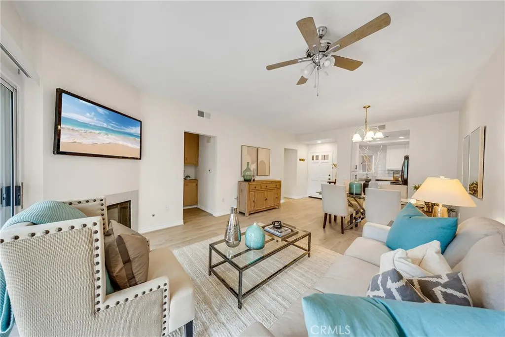 Welcome to Los Portillos! Upgraded ground-floor unit in a private view location featuring 2 bedrooms, 2 bathrooms, a detached 1-car garage, and assigned carport (#148). Enjoy a private patio backing to the Cleveland National Forest with beautiful sunset views. The remodeled kitchen offers granite countertops, a light neutral ceramic tile backsplash, and updated cabinetry. Interior highlights include new vinyl flooring, custom paint, a cozy fireplace, upgraded lighting throughout, and recessed lighting in the guest bedroom, along with mirrored wardrobe doors. The garage features built-in cabinets and overhead storage racks. Community amenities include a pool and spa. Conveniently located within walking distance to shops, restaurants, and more. One of the best-priced 2-bedroom condos in Rancho Santa Margarita with both a garage and a carport. Don’t miss this opportunity!