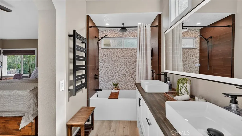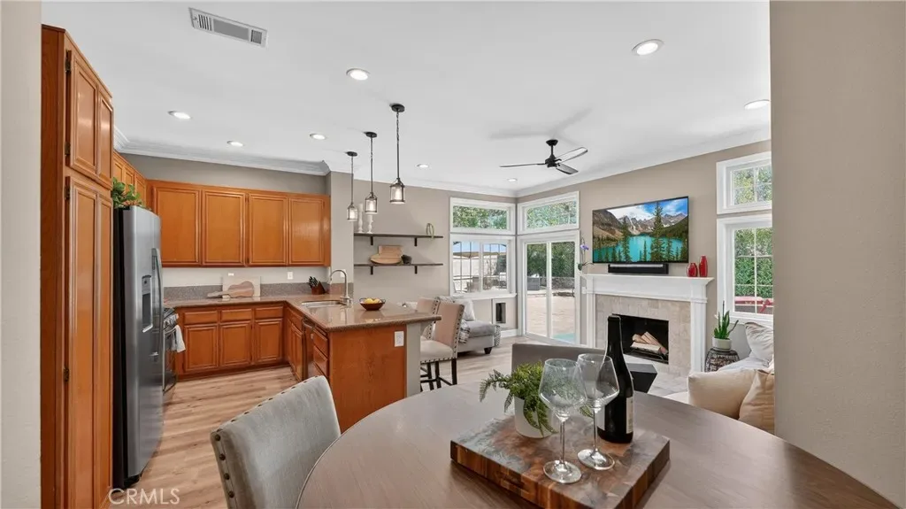 Paid-off solar, a stunning saltwater pool and spa, and an oversized lot set the stage for this beautifully upgraded home in the highly desirable Robinson Ranch community. Perfectly located just a short walk to Robinson Ranch Elementary School, this exceptional property offers the ideal blend of lifestyle, comfort, and thoughtful upgrades. Over the years, the home has been meticulously improved. In 2015, upgrades included all new windows, a smart Nest thermostat system, and attic storage with ladder access in the garage. In 2017, the guest bathroom was fully remodeled with custom tile work, a pocket door, towel warmer, lighting controls, and a walk-in shower with a two-way valve. The outdoor space was also transformed with new landscaping, mature avocado and lemon trees, pavers, and artificial turf, creating a private setting. Additional improvements included the paid-off solar system valued at approximately $30,000, custom laundry shelving and cabinetry, a new garage door, and automated Lutron front window coverings. In 2020, the home continued to evolve with the addition of a beautiful saltwater pool and spa featuring custom stonework and waterfall accents, all controllable through the Pentair app. Other enhancements included upgraded landscape drainage, dimmers throughout, window coverings, recessed LED lighting, and a whole-home Pentair water filtration and softening system. In 2022, the home received a stylish refresh with luxury vinyl plank flooring, new interior paint including doors and hardware, new baseboards, and updated ceiling fans. In 2025, the primary bathroom was completely remodeled with dual sinks, custom cabinetry, designer tile, a pocket door, towel warmer, lighting controls, a lighted mirror, and an oversized soaking tub with a three-way shower/tub valve. The primary and secondary closets feature custom built-ins, and the home was repiped with PEX. Additional enhancements include updated landscaping, a house-mounted speaker system with landscape subwoofer, and a Nest/Google smart doorbell. Residents of Robinson Ranch enjoy a remodeled community pool, pickleball and tennis courts, scenic parks, and greenbelts for children and dogs. Located in Rancho Santa Margarita, one of the safest and most desirable cities in America, this home offers the perfect blend of comfort, community, and lifestyle.