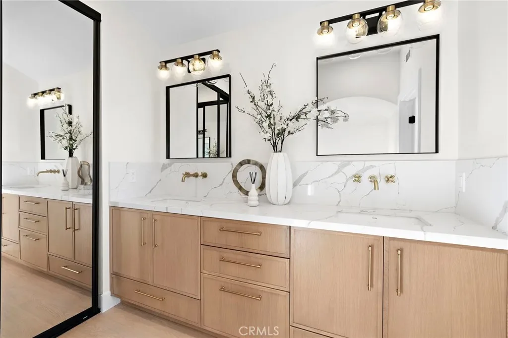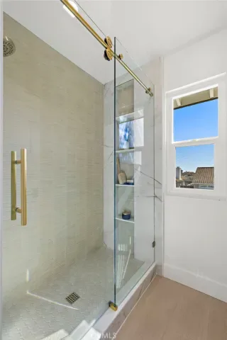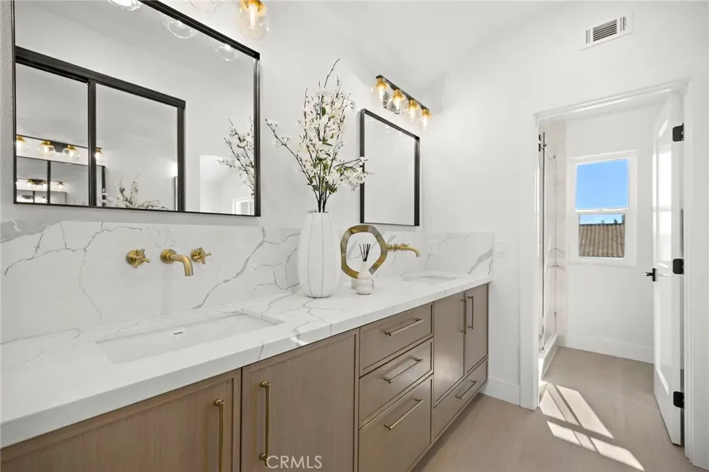 The secondary bathroom has also been fully renovated with new tile, vanity, fixtures, and finishes, creating a cohesive and modern feel throughout the home.