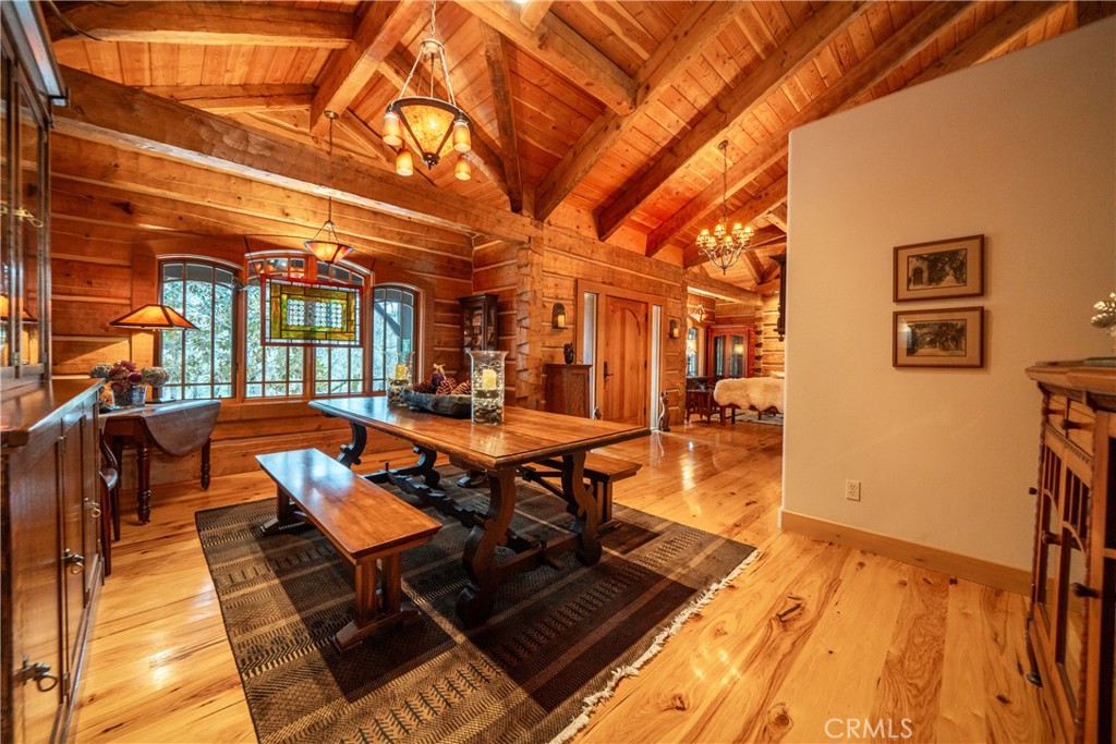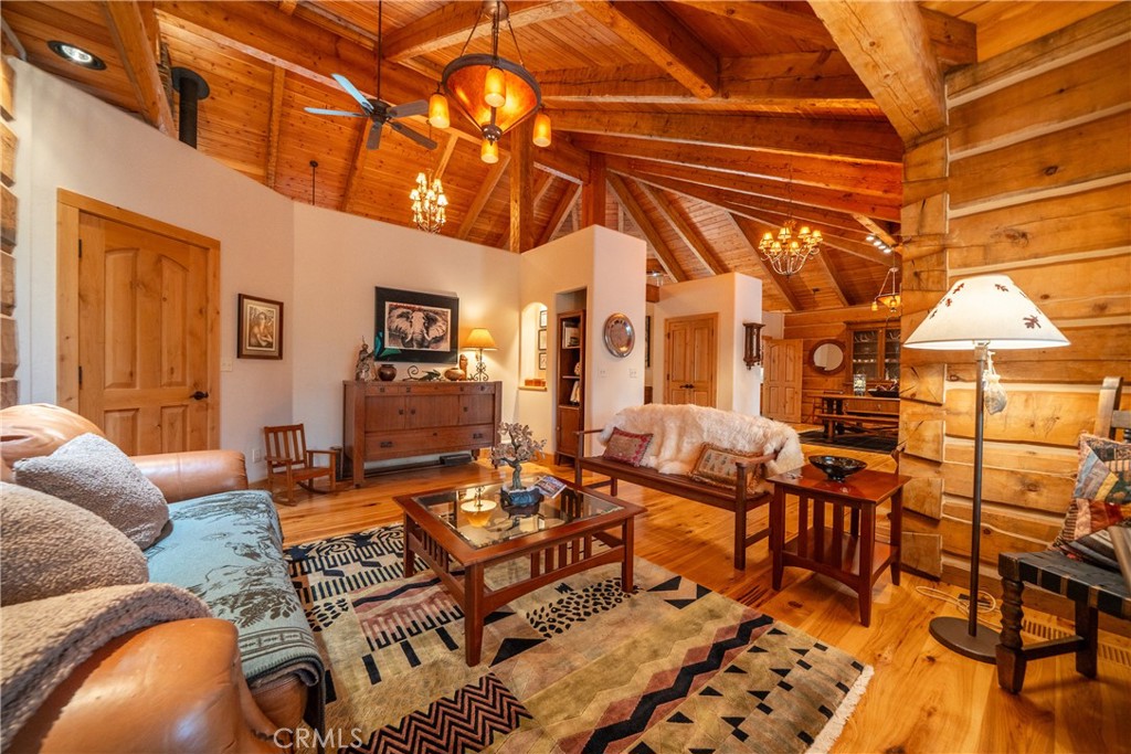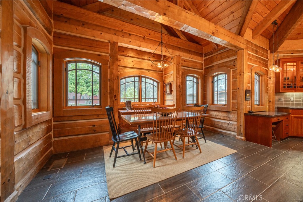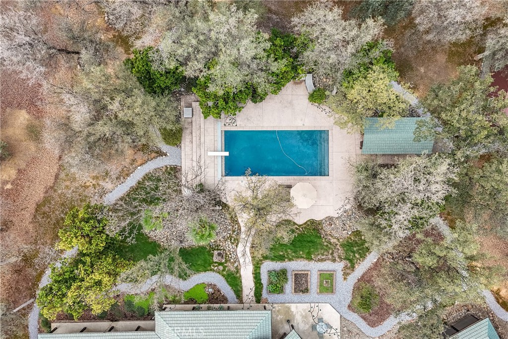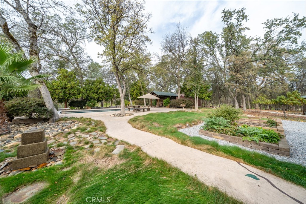Incredible Custom Hand-Hewn Log Home on 5 Private Acres Prepare to be amazed by this one-of-a-kind, custom-built hand-hewn log home that perfectly blends rustic charm with modern elegance. *Scan the QR code (picture #2) to experience a 3D Virtual Tour!* Featuring 12-foot walls and soaring 25-foot ceilings, this architectural masterpiece offers a warm yet luxurious atmosphere throughout its nearly 3,500 sq. ft. of living space. Inside, you’ll find hickory plank hardwood floors, granite countertops, and a commercial-grade chef’s kitchen equipped with premium appliances. The stone hearth wood-burning fireplace creates a stunning focal point in the great room, while arched windows fill the home with natural light and showcase views of the surrounding landscape. With 4 spacious bedrooms—each featuring at least one wall of exposed logs—and 3.5 beautifully appointed bathrooms, this home offers both character and comfort. Step outside to enjoy the full wraparound covered porch, perfect for relaxing or entertaining. The in-ground gunite pool, garden boxes, and built-in fire pit make outdoor living exceptional. A poured concrete driveway and sidewalks are finished with natural, wavy edges and etched twig-and-leaf details for a custom artisan touch. Additional highlights include a Metal Class A fire-rated roof, detached 4-car garage, detached metal shop, and walking paths throughout the property. Every inch of this home reflects craftsmanship, creativity, and care. This absolute stunner and truly one of a kind was featured in Log Home Design magazine and found a spot in Redding, California’s AAUW prestigious annual home tour.