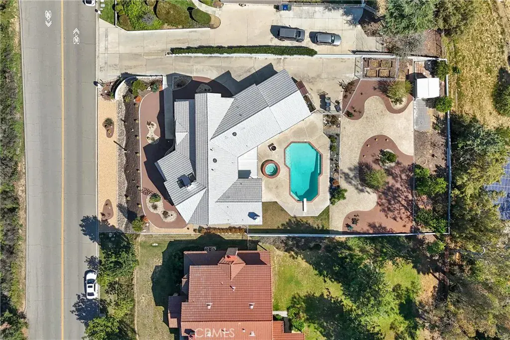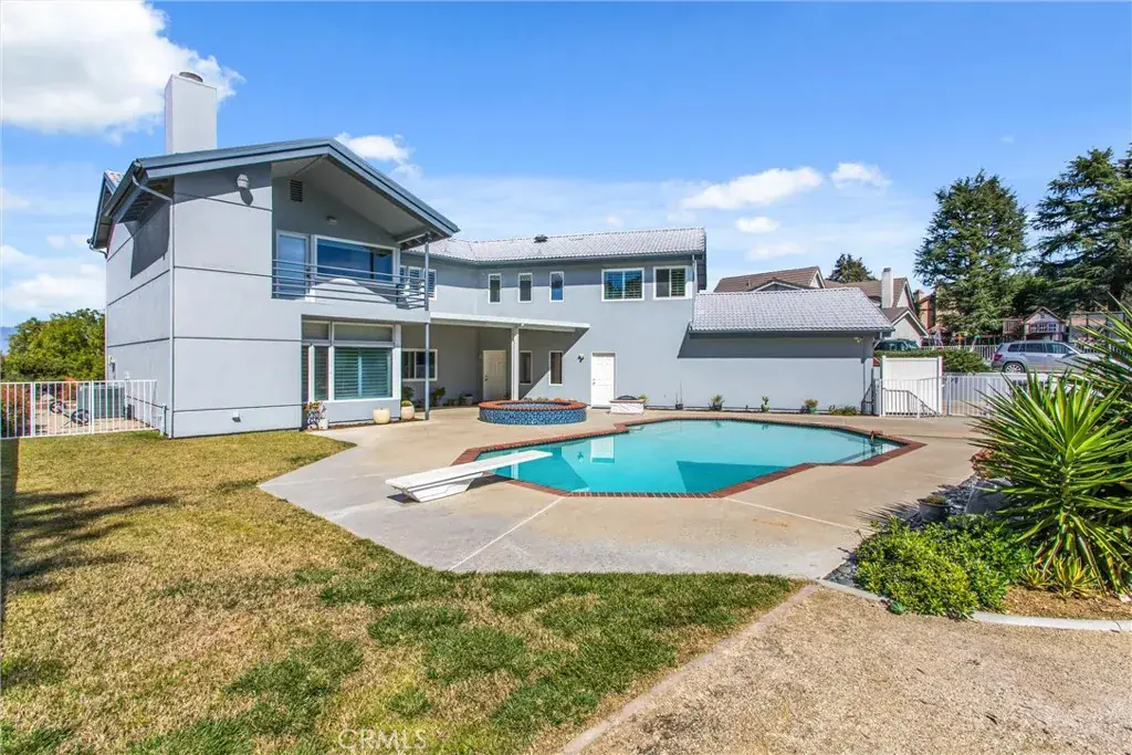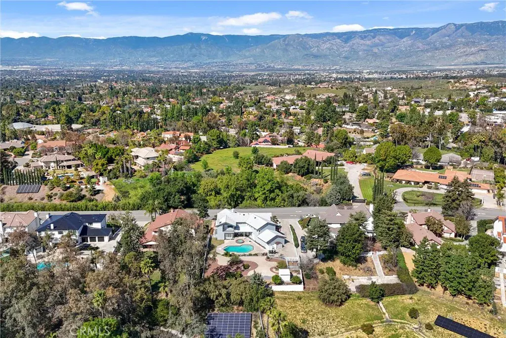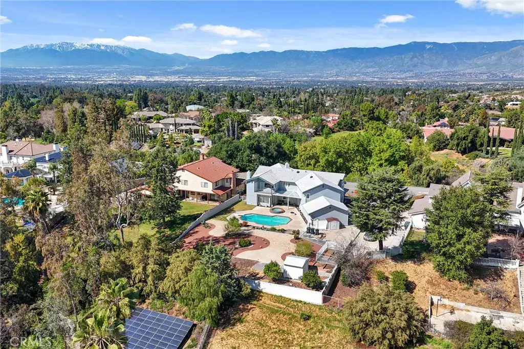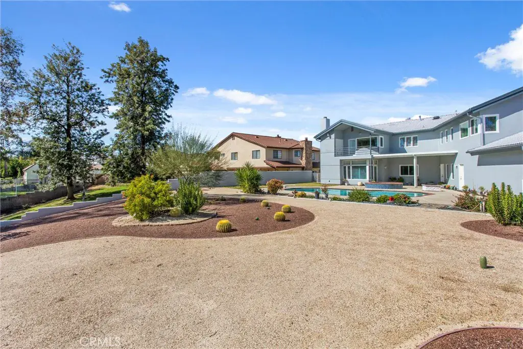 Situated within an intimate enclave of approximately thirteen semi-custom residences built in the late 1980s, this expansive 4,926 square foot estate offers scale, flexibility, and exceptional outdoor living on a 20,298 square foot lot. Designed with functionality in mind, the residence features 5 bedrooms — four with its own walk-in closet — and 4.5 bathrooms. A downstairs bedroom with full bath provides convenience for guests or multi-generational living. The main level also includes a dedicated office off the entry, formal living and dining rooms, and an open family room designed for everyday living and entertaining. Dual staircases enhance both flow and architectural presence. Upstairs, four additional bedrooms include a spacious primary suite complete with private balconies at the front and rear of the home, an expansive walk-in closet, dual vanities, a jetted soaking tub, and separate shower. The 5th bedroom, with built in work spaces, opens to the hallway and the primary bedroom offering flexibility as a home office or nursery. The grounds are designed for enjoyment and efficiency, featuring a pool, spa, firepit, water-conscious landscaping, and a variety of fruit trees (Asian apple, Asian pear, Oro Blanco grapefruit, Key lime, Kiefer lime, Mandarins, Naval orange, Lemon, and Persimmon). Additional highlights include a three-car garage, dual water heaters, water softener system, central vacuum, built-in storage and workstations throughout, septic system, and three water shares. The home presents an opportunity for thoughtful updates while offering substantial square footage, a generous lot, and a rarely available setting within Redlands.