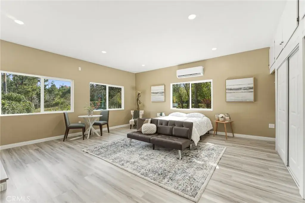 The large primary suite is thoughtfully located on the opposite side of the home for added privacy and offers a true retreat with a hotel-inspired spa vibe, complete with a generous walk-in shower, separate oval soaking tub, and expansive layout. An energy-saving mini-split system in the primary suite provides efficient, customizable climate control for year-round comfort while maximizing energy savings.