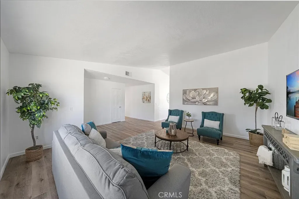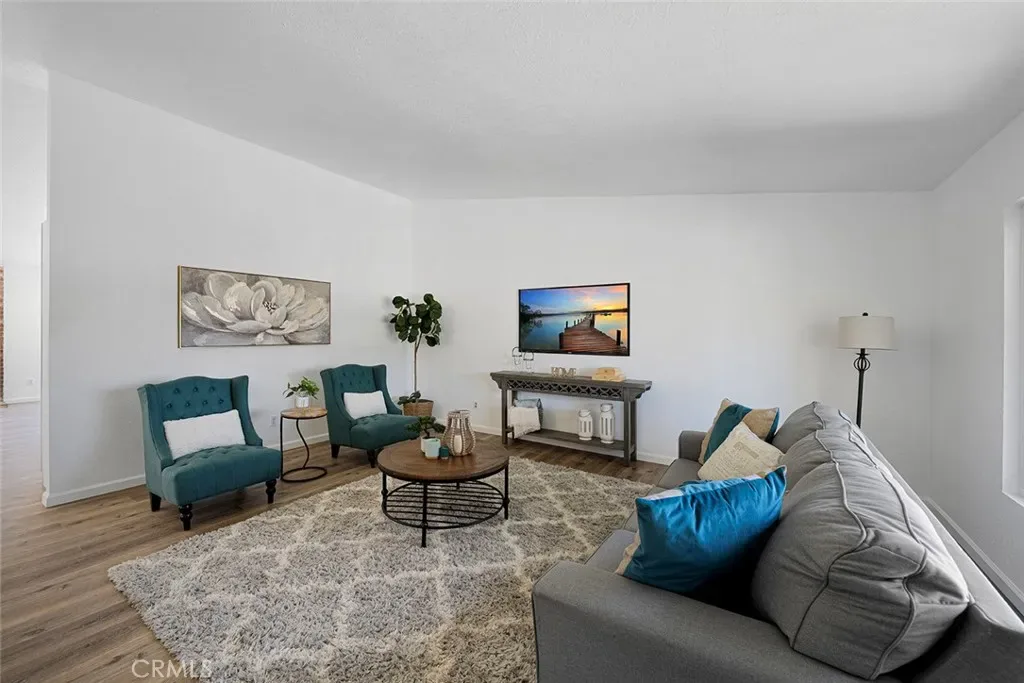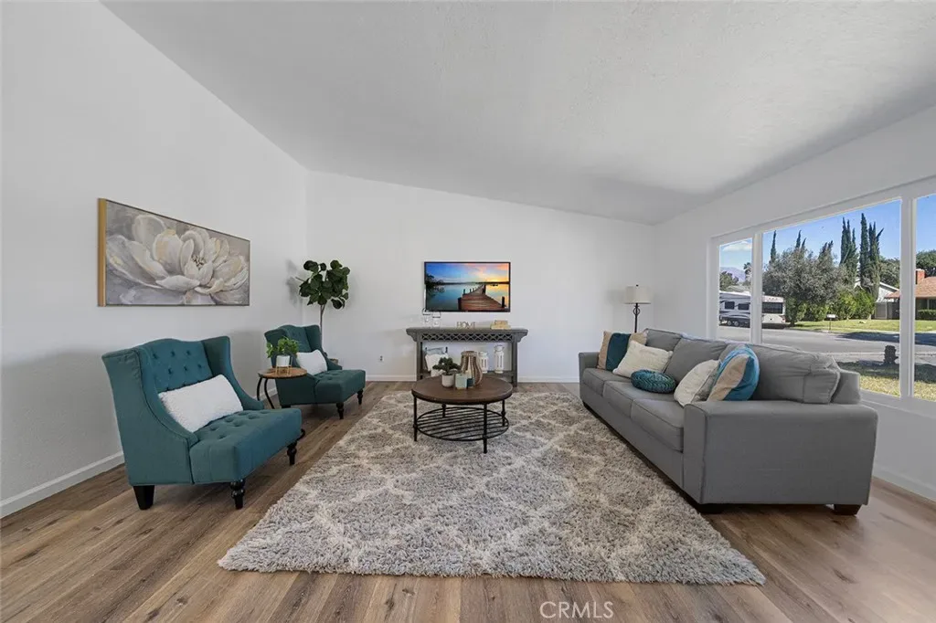 The living room greets you w/ warmth & natural light pouring through a large double-pane picture window. New luxury vinyl plank flooring runs throughout the home, creating a fresh & cohesive look, making the space feel instantly inviting.