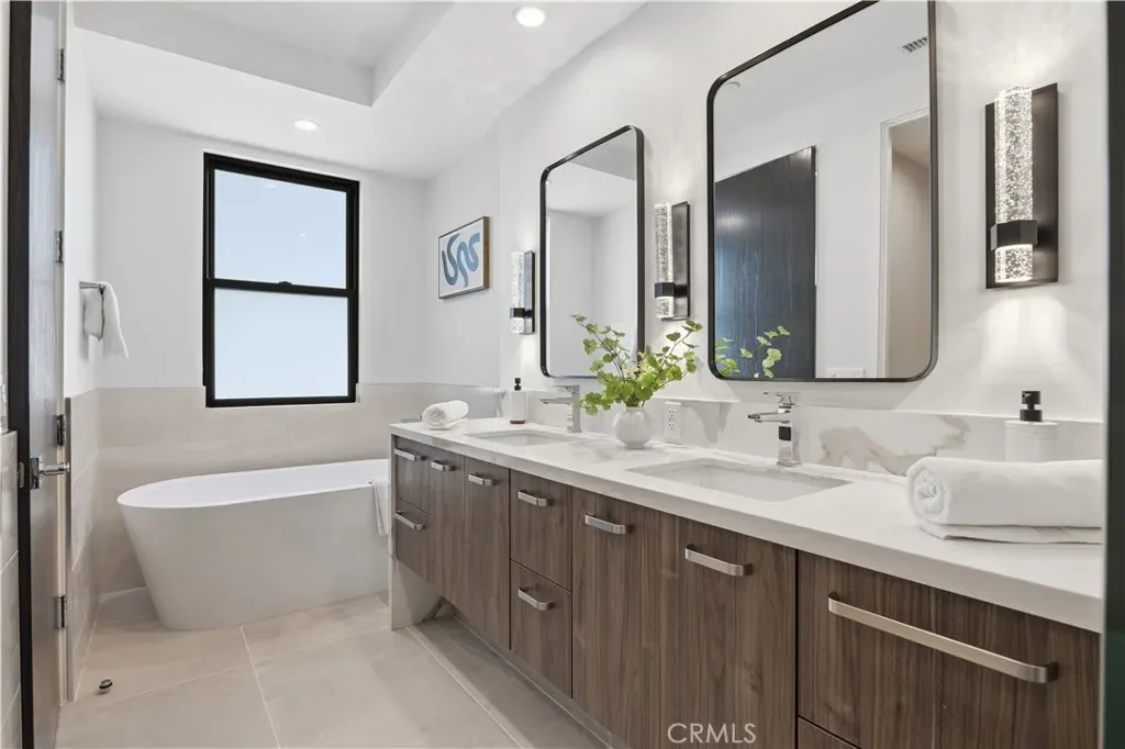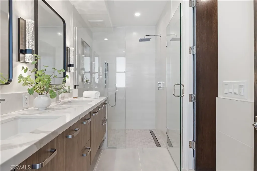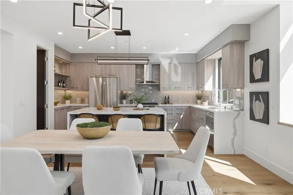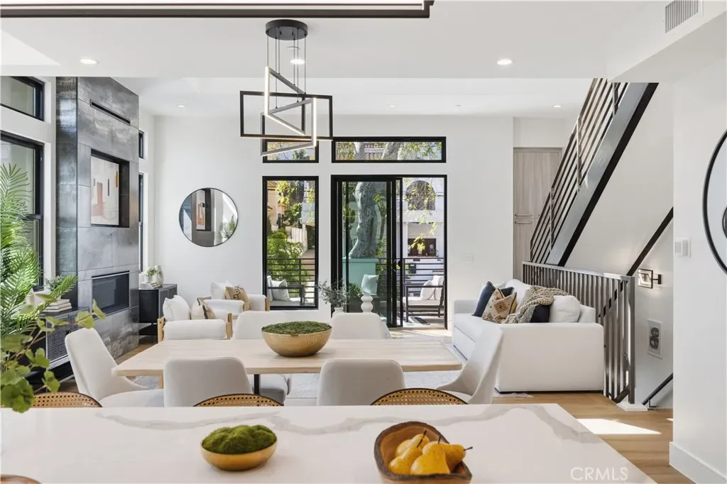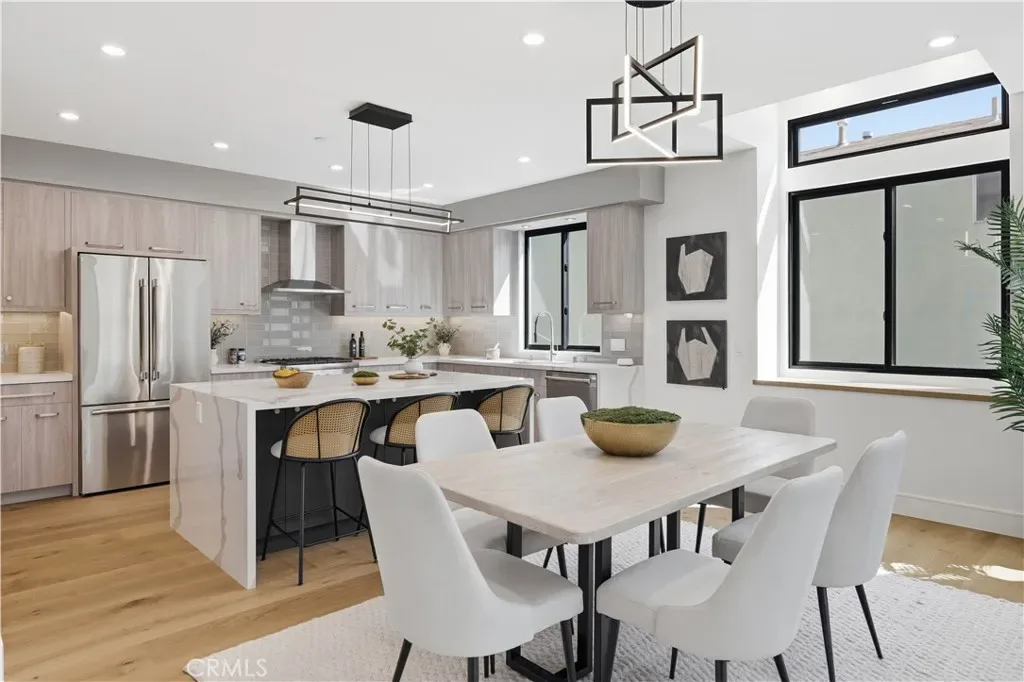 Brand-New Construction in Prime North Redondo Beach! – Tucked away in one of North Redondo’s most sought-after neighborhoods, this stunning front-unit townhouse combines modern luxury with effortless coastal living. Designed to maximize natural light, the home features a bright, open layout and elegant finishes throughout. A highlight of the property is the spacious mezzanine level with its own balcony—perfect as a media lounge, home office, or play area, offering flexibility for any lifestyle. The inviting living area centers around a sleek gas fireplace and is enhanced by wide-plank white oak hardwood flooring, solid-core doors, and recessed LED lighting. The gourmet kitchen is a showpiece, featuring an oversized island with quartz countertops, a stylish tiled backsplash with hidden outlets, and high-end cabinetry with soft-close metal drawers. Top-of-the-line Thermador stainless steel appliances—including a gas range, French door refrigerator, dishwasher, and microwave drawer—complete this impressive space. Each bathroom is thoughtfully designed with custom mirrors, contemporary lighting, and Hansgrohe fixtures. The home also includes a dedicated laundry room with a sink and side-by-side hookups, providing everyday convenience. Comfort is guaranteed with central air conditioning, forced-air heating, and a tankless water heater for energy efficiency. Additional features include Andersen windows, solar panels, and a two-car garage with a wooden door. The smart home system offers peace of mind with motion sensors, exterior cameras, a video doorbell, and remote control for lighting, garage, and entry doors—all easily managed from your phone. With its sophisticated design, premium finishes, and modern technology, this home delivers the best of Redondo Beach living—stylish, secure, and ready to enjoy.