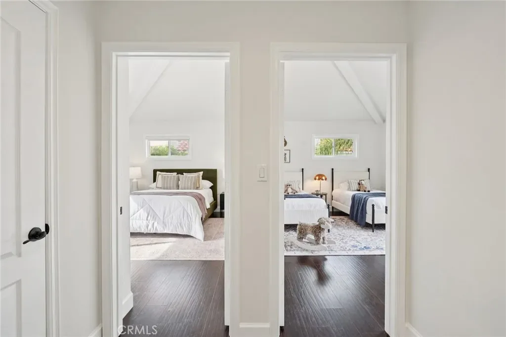 Two additional spacious bedrooms, a full bath, a conveniently located hallway laundry area, and ample storage complete the upper level.