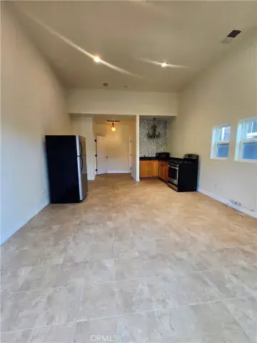 Coastal living at its finest in this airy, private back unit situated within a single-family residence. This charming retreat boasts approximately 700 sq. ft. of comfortable living space featuring vaulted ceilings and recessed lighting throughout. The open-concept layout includes a functional kitchenette equipped with a refrigerator and stove. With one spacious bedroom and two full bathrooms, this unit offers a rare level of convenience and privacy for a one-bedroom rental.