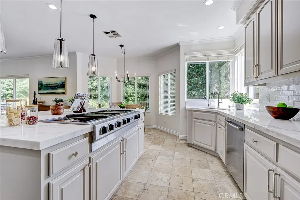 This beautiful and spacious upper Riviera home is on a prime corner lot and offers exceptional elegance, and a coveted coastal lifestyle. This one-of-a kind Mediterranean/Spanish residence was built in 1999 from the ground up and is thoughtfully designed for both everyday living and refined entertaining. A grand foyer welcomes you in and sets the tone with soaring ceilings and an abundance of natural light. The formal living room with fireplace provides a warm and inviting space, while the expansive great room—also with a fireplace—flows seamlessly into the heart of the home. A dedicated dining room offers the perfect setting for gatherings both intimate and large.