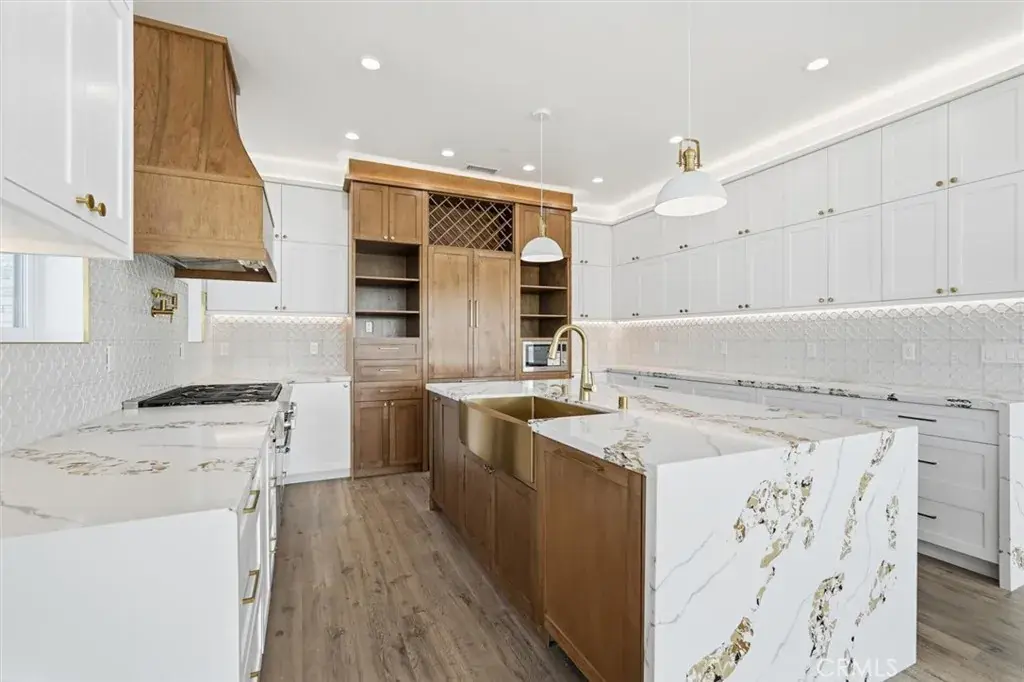 This rear unit is the largest of them all. With 5 bedrooms and 3.5 baths and an elevator it’s well suited for family, friends, and overnight guests who may never want to leave! Come experience the incredible weather the South Bay has to offer. With multiple balconies, a rear yard, and a roof top deck there’s a place for everyone to relax and entertain. There are 2 ‘front’ doors – one from the walkway on the south side of the property and one by the garage. There are 2 bedrooms and a bath on the lower level along with a room that could be used as a playroom, an office, or a personal yoga studio. The next level up houses the primary bedroom, an elegant bath, and walk-in closet, in addition to a laundry room, and two more bedrooms with a shared bathroom between them. The top level boasts a big kitchen with Thermador appliances, a pot filler, an apron style sink, and built-in wine rack. The large living area lends itself to a variety of layouts, so you have your choice of where to position your living room and dining room furniture. There’s also another office space where you can work from home or keep an eye on the kids as they tackle homework. This level has the largest balcony to take advantage of incredible sunsets. 220v in the garage is all ready for your personal EV charging station.