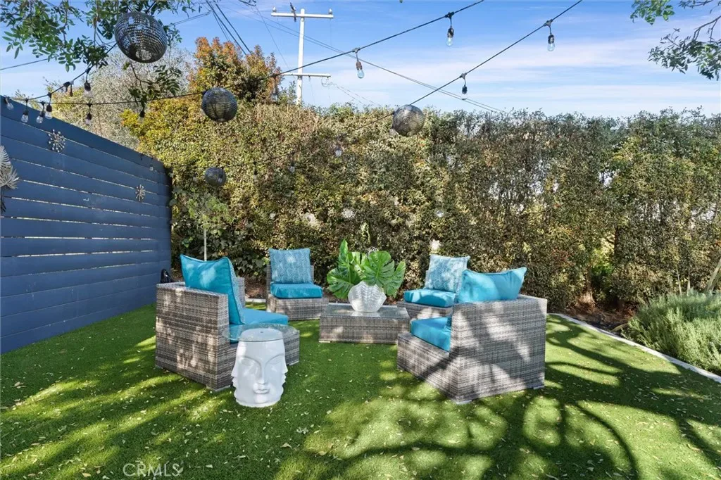 Situated on an impressive 6,601 square foot lot, the property showcases a beautifully landscaped, multi-level backyard ideal for both entertaining and everyday enjoyment. The upper terrace (900 SF!) offers a large, flat lawn area perfect for gatherings, play, or alfresco dining, creating a rare elevated vantage point. On clear days, the seller notes distant views of the Hollywood Sign, adding a distinctive and memorable touch.