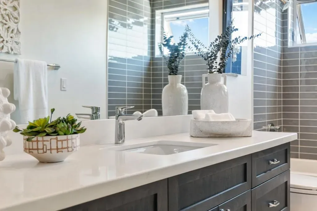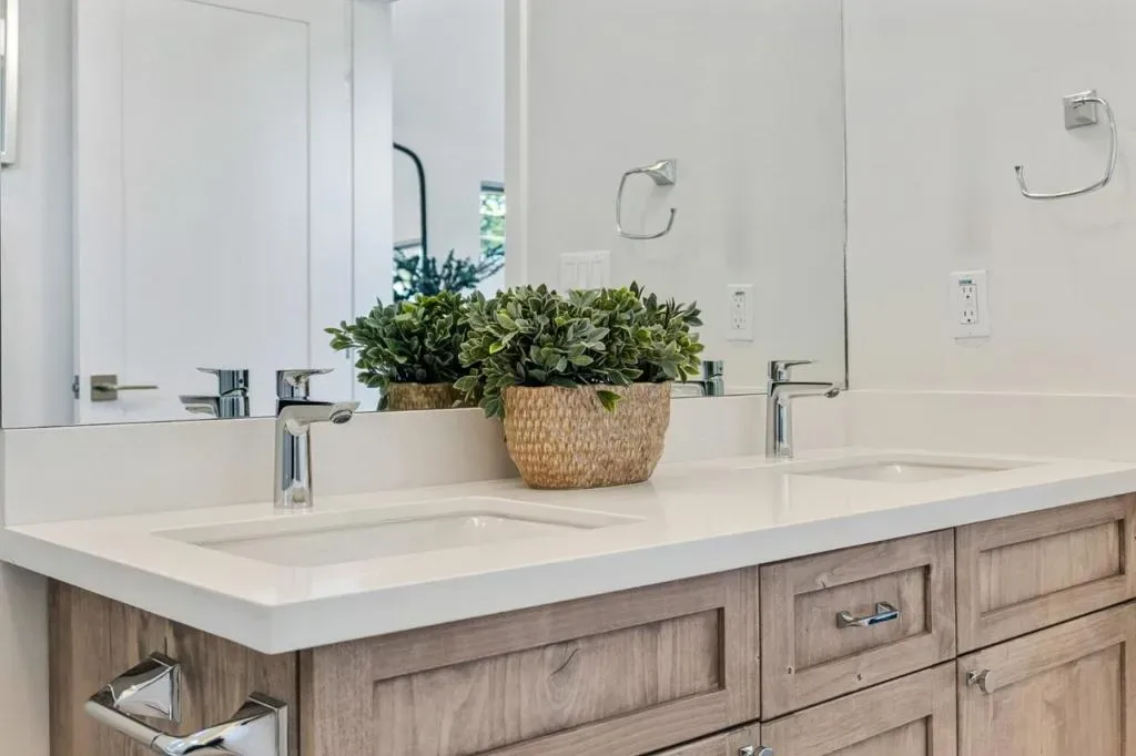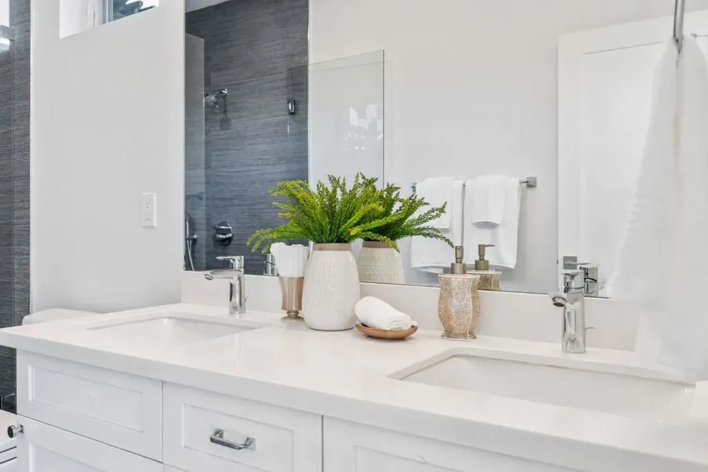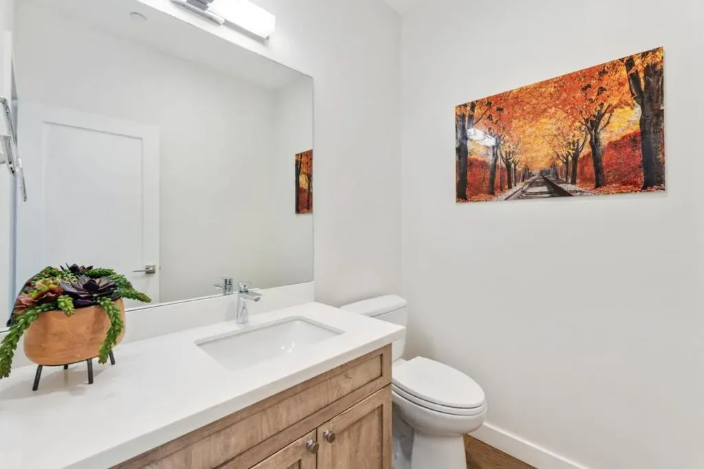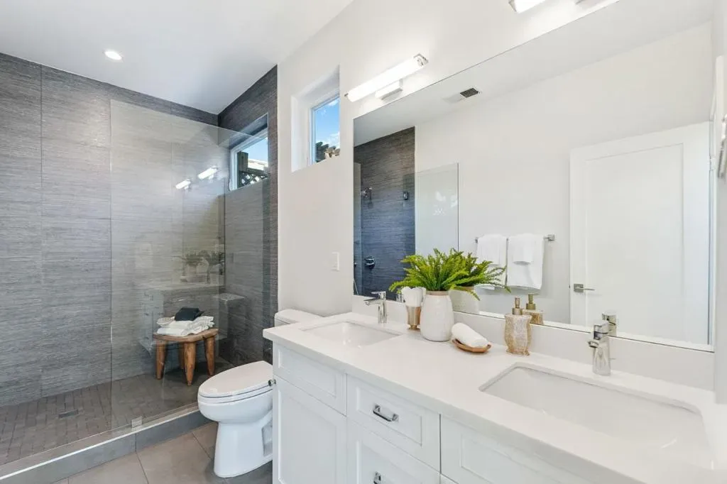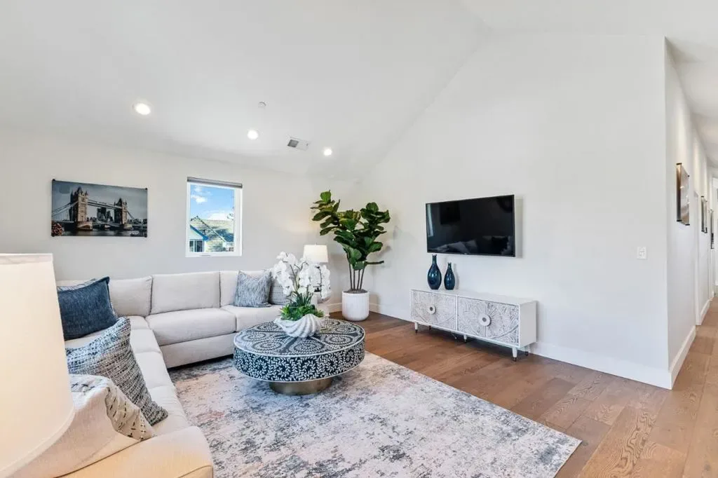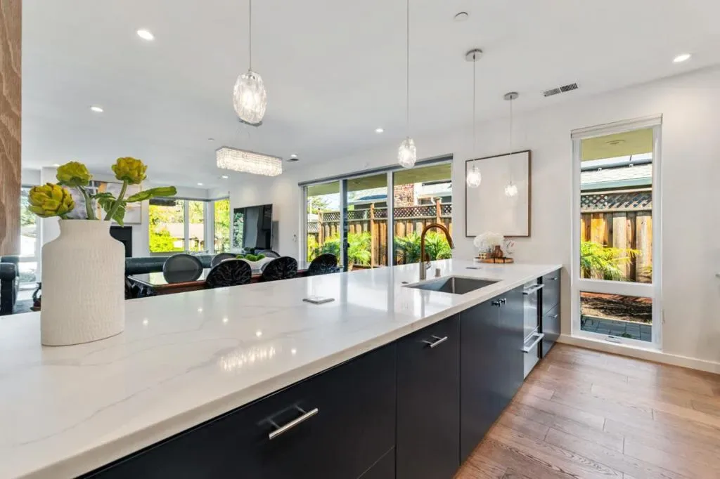 A stunning modern farmhouse blending contemporary architecture w/ warm, refined finishes. Designed with soaring ceilings, expansive windows, and an open layout, the home is filled with natural light and a seamless indoor-outdoor connection. The heart of the home is a chefs kitchen w/ custom cabinetry, elegant Calacatta and white quartz countertops, and premium stainless steel appliances. The space flows effortlessly into the dining and living areas, creating an ideal setting for everyday living and entertaining. The thoughtfully designed floor plan offers four bedrooms including two luxurious primary suites. One suite is conveniently located on the main level w/ direct backyard access, while the upstairs primary retreat features vaulted ceilings and a serene, private atmosphere. An additional upstairs family room provides flexible space for a media lounge, office, or play area. High-quality finishes throughout include Monarch Plank flooring, Porcelanosa tile, Hansgrohe and Grohe fixtures, Toto toilets, and Kohler sinks. Modern comforts include Milgard windows, dual-zone HVAC w/ Nest thermostats, fire sprinklers, and upgraded utilities. The landscaped grounds feature lawn, mature plantings, and a paver walkway, creating a welcoming outdoor setting for relaxation and entertaining.
