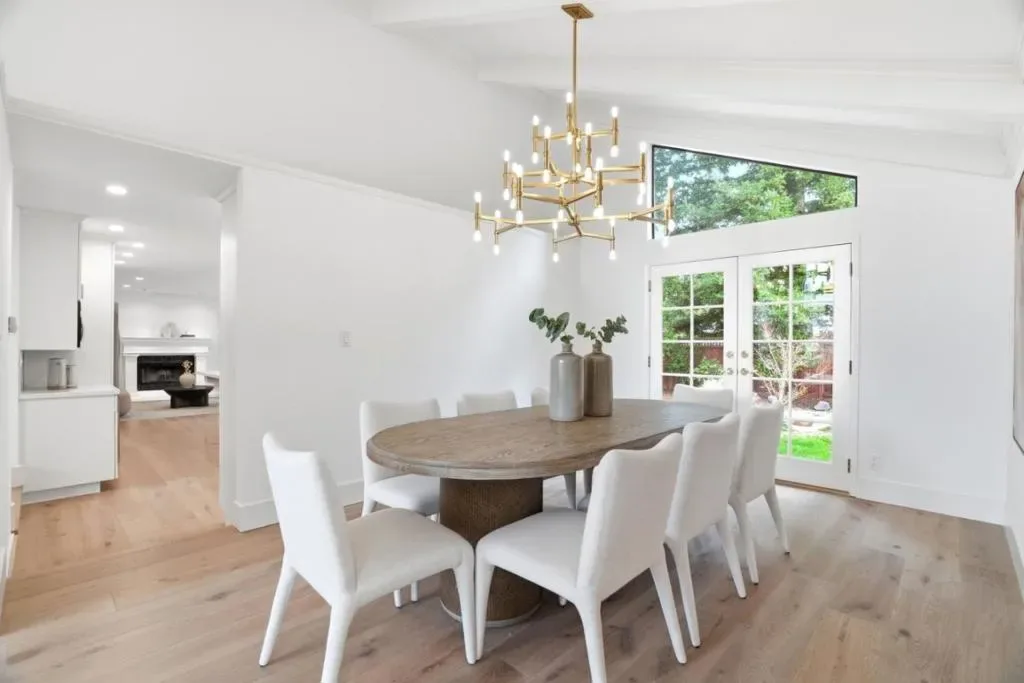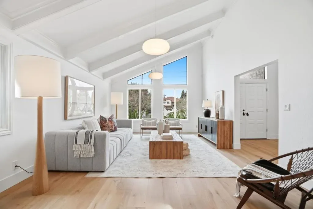 An updated classic home offering a fresh take on traditional living, blending timeless charm with a sleek, contemporary feel on a quiet, neighborly street. Natural light floods the interior, highlighting newer hardwood flooring, designer lighting, and soaring vaulted ceilings that create an airy, expansive atmosphere. The heart of the home features a remodeled gourmet kitchen and a separate family room, perfect for seamless entertaining or quiet relaxation. Four generously sized bedrooms are conveniently grouped together, while updated bathrooms and a dedicated laundry room add to the home’s modern functionality. Outside, the property is a private sanctuary defined by various seating areas, fresh privacy hedging and a majestic Redwood tree, offering a serene backdrop for outdoor entertaining. Practicality meets style in the finished garage, complete with epoxy floors and extra storage. Ideally located for neighborhood strolls past the estates of Atherton, or an easy commute to Stanford, Silicon Valley, or San Francisco.