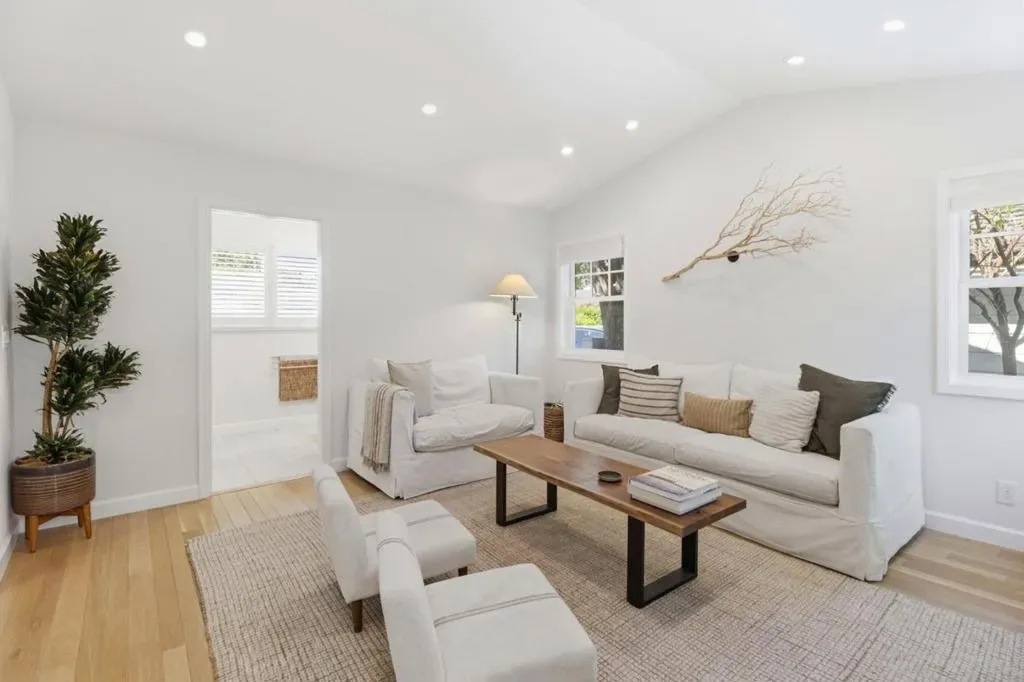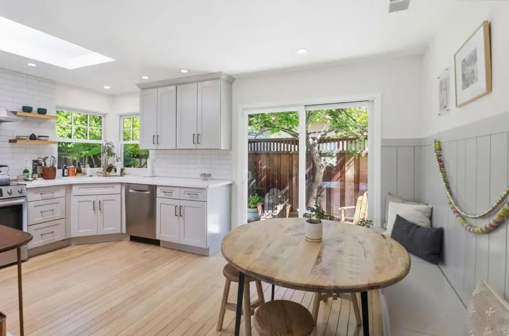 Welcome to this inviting single story home with picket fence in charming neighborhood. Updated throughout and featuring newer baths and recently added light-filled Living Room with electric fireplace for added ambiance. The stylish kitchen features a skylight, built-in storage and seating with access to the backyard. Spacious separate Dining Room. The garage features an additional room which makes for a wonderful work from home space, artist studio or children’s play room. Conveniently located to commute routes, shopping, Stanford and all that the Peninsula has to offer. This is a 10! Home is 1362sf per architectural plans, Garage is an additional 444 sf.