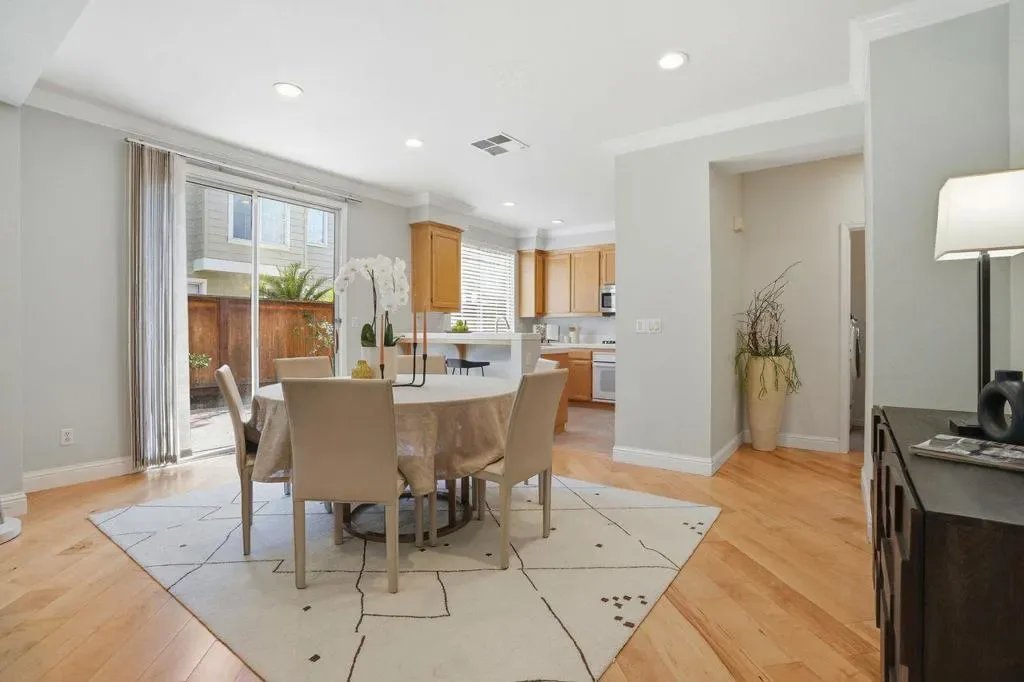 WONDERFUL 4BD/2.5BA home in desirable Gossamer Hollow community in prime Redwood Shores with its easy access to incredible amenities. Main floor of this excellent floor plan has an open concept kitchen, dining/living room, half bathroom, laundry room, and has a sliding door that opens to a nice backyard with patio, grass and even a lemon tree. There are four bedrooms and two well appointed bathrooms upstairs; the primary bedroom ensuite has a spacious bathroom with a double sink vanity, illuminating tilework in the glass enclosed shower, a bathtub, and two separate closets. Beautiful engineered hardwood floors on the first floor and carpets in the bedrooms for design and comfort. LOCATION, LOCATION, LOCATION…308 Sandhurst is close to highly rated Belmont-Redwood Shores schools and Carlmont High, Bay Trail, tennis courts, playgrounds, lagoon, a community library, and the Bay Club. Convenient access to commuting options to 101/92, SFO, Caltrain, San Mateo bridge, and proximity to major high tech companies like Oracle, EA, Shutterfly, Informatica, and more. Must see!