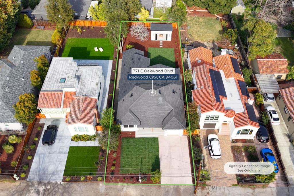Discover 371 E Oakwood Boulevard, an extensively upgraded and thoughtfully expanded residence offering 3 bedrooms, 2 bathrooms, plus a newly built detached cabana of approximately 220 sq ft with electric power and a four-panel bi-fold sliding door for flexible, multi-use living. The home showcases elevated interior finishes including white oak flooring, smooth level-5 walls, designer lighting, and curated stone and tile details throughout. The kitchen is well-appointed with semi-custom cabinetry and premium appliances, while the bedroom spaces are complemented by custom walk-in closets and built-in storage solutions. Significant value-add upgrades include a new Daikin HVAC heat pump, full electrical rewire with added sub-panel and EV charger, and all-new copper plumbing. Exterior enhancements feature modern black-framed windows and doors, a custom pivot entry, updated stucco with stone accents, Trex decking, and refreshed landscaping and fencing. Ideally located near Highway 101, I-280, El Camino Real, and Caltrain, with convenient access to Downtown Redwood City, major Peninsula employers, parks, and everyday amenities, this property offers a prime Peninsula address and the opportunity for long-term enjoyment and value in one of Redwood Citys most sought-after neighborhoods.