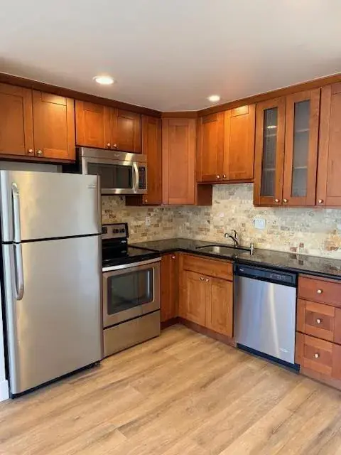 Bright & spacious unit with sunny balcony. This unit is move in ready with newly remodeled kitchen & bath, luxury vinyl flooring, recess lighting and new appliances. In addition, there is a one car garage, storage, and coin op laundry.
