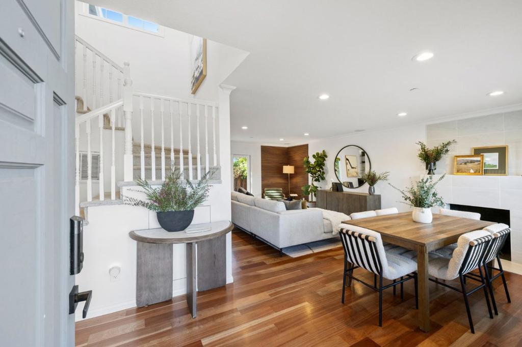 612 Hudson Street is a light-filled, flexible home with a layout that adapts to a range of needs. The main level includes a full bedroom and bathroom, providing versatility for guests, work-from-home needs, or multi-generational living. Living and dining areas connect directly to the backyard, creating an easy indoor-outdoor flow, with an adjacent side yard dedicated to gardening and additional outdoor use. Upstairs, three bedrooms are positioned away from the main living spaces. The primary suite features a walk-in closet and a clean, modern bathroom. The secondary bedrooms primarily overlook the backyard and side yard, offering added separation from the street. Additional insulation in key living areas helps create a calm interior environment. Both the front and backyard are fenced and landscaped, creating a sense of privacy and separation from the sidewalk. A generous two-car garage with loft storage, built-in closets, and a wide driveway provides ample off-street parking and expanded storage, with direct access to both the backyard and side yard. Located near downtown Redwood City, Caltrain, parks, schools, and neighborhood markets, this home offers a well-considered layout, practical amenities, and a central Peninsula location.