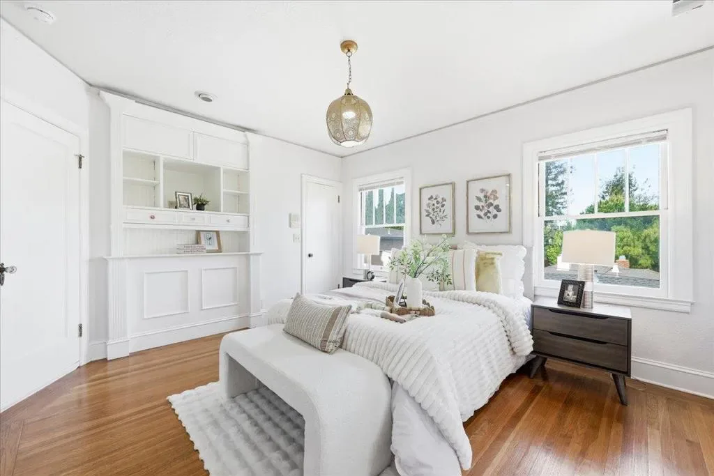Beautifully 4-bed, 3-bath two story home in a desirable Redwood City location near Red Morton Park and vibrant downtown. Primary 2900 sqft plus a 630 sqft permitted accessory building, totaling 3,530 sqft on a 7,400 sqft lot! A welcoming front porch and spacious entry! The interior features a formal living room w/ fireplace, an elegant dining room w/ French doors & pleasant views, and a generous family room that opens seamlessly to backyard. The gourmet kitchen is equipped with wood cabinetry, granite countertops, a large island, a pantry, a breakfast area & high-end appliances including a professional 6-burner Wolf range with a commercial-style hood. Upstairs, a spacious primary suite has a fireplace, an updated bath, a huge walk-in closet & backyard views. Two additional bedrooms connect to a long office or sitting area lined with walls of windows. A hallway bath & a laundry also conveniently located upstairs. Hardwood floor throughout. A step-down basement with many windows offers space for recreation. The long driveway provides ample parking in addition to a detached 2-car garage. The permitted ADU has 1 bed, 1 bath, vaulted ceiling & kitchen, ideal for rental income, guests, or extended family. A rare opportunity to own a luxury property in the heart of Silicon Valley.