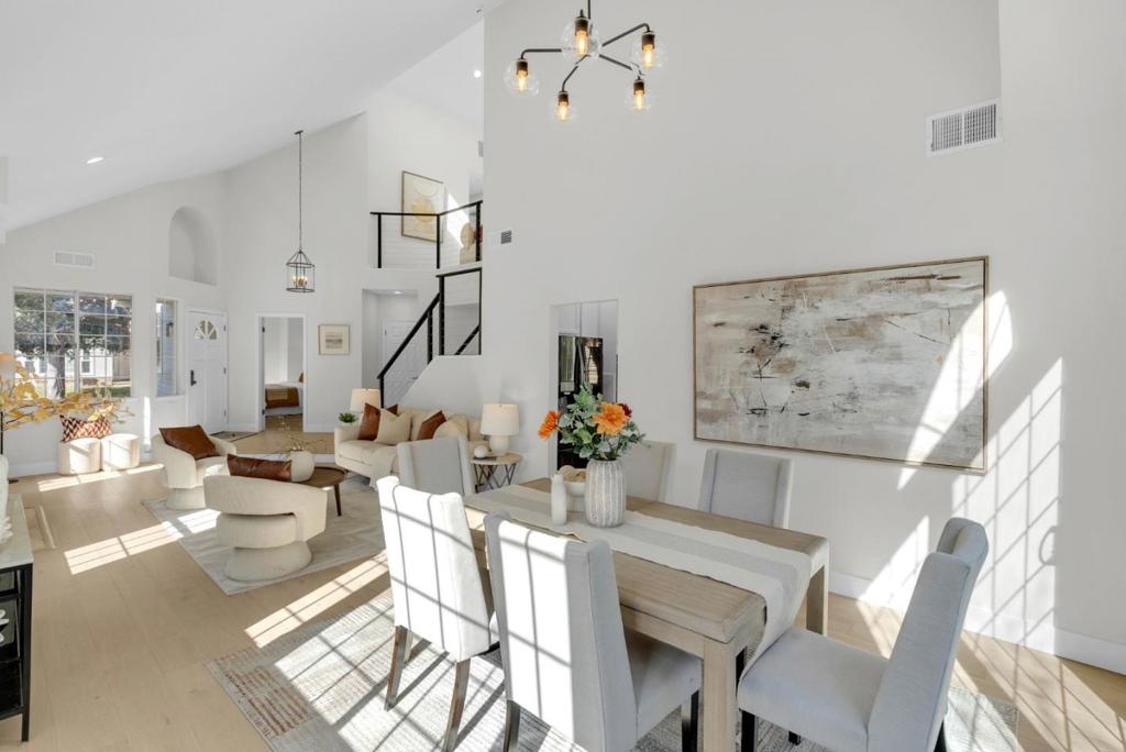 Elegant, thoughtfully updated residence in the heart of sought-after Redwood Shores. Soaring vaulted ceilings, skylights, and expansive windows fill the home with a plethora of natural light, creating a bright and welcoming atmosphere throughout. An open floor plan offers both a formal living room and a separate family room, complemented by three fireplaces for added warmth and character. One bed and full bath on the main level making it perfect for guests, multigenerational living, or a home office. Upstairs offers three full bedrooms and two bathrooms, including primary with walk-in closet, sunken tub, and both with oversized dual vanities. Set within a premier waterfront community, this home is surrounded by scenic trails and parks while remaining close to top-rated schools, major tech campuses, and convenient access to Highways 101 and 92. A rare opportunity to enjoy light-filled living in one of the Peninsulas most coveted neighborhoods.