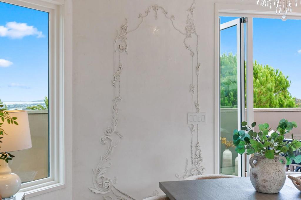 Perched on a scenic hillside with breathtaking Bay views, this home is both a work of art and a testament to craftsmanship. Built in 2020, it comes with a 3BR/4BA main home and a 1BR/1BA ADU featuring its own private entrance. Inspired by European architecture, particularly Antoni Gaudis expressive forms, the design reveals sculptural walls, vaulted ceilings, and skylights that fill every space with light. 5-panel NanaWall doors extend the great room onto a view deck, while a vaulted lounge with lantern chandeliers balances grandeur with intimacy. The chefs kitchen showcases Thermador appliances, porcelain finishes, and custom cabinetry beside a cozy breakfast nook. The primary suite is a serene retreat with a sculptural fireplace, private terrace, and spa-like bath featuring heated floors, a soaking tub, and glass shower. Crafted with quality at every turn, engineered oak floors, Alder Knotty doors, Anderson windows, solid-core interiors, and fire-resistant materials crowned by a lifetime roof, the home offers artistry that endures. Outdoor living includes a warm sunroom, a lush backyard with 30+ kinds of fruit trees, stamped-concrete drive with RV/boat parking, a 2-car garage, and a storage shed. Minutes from freeways and top schools Roy Cloud Elementary and Woodside High.