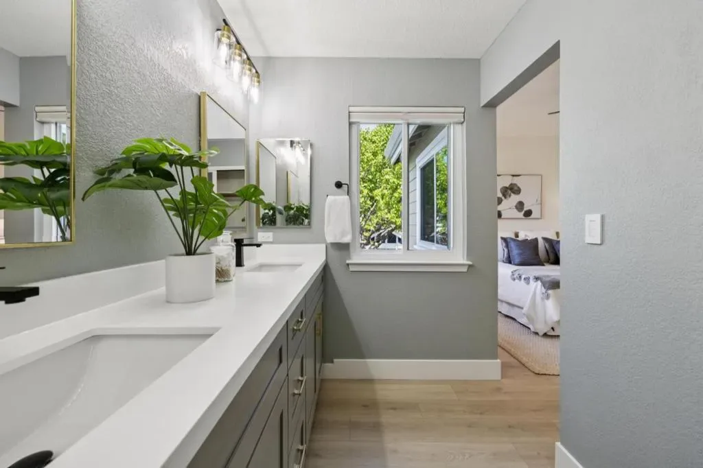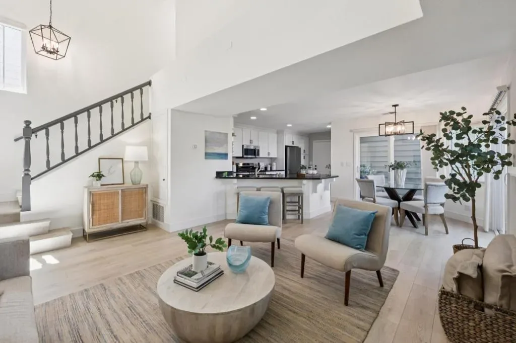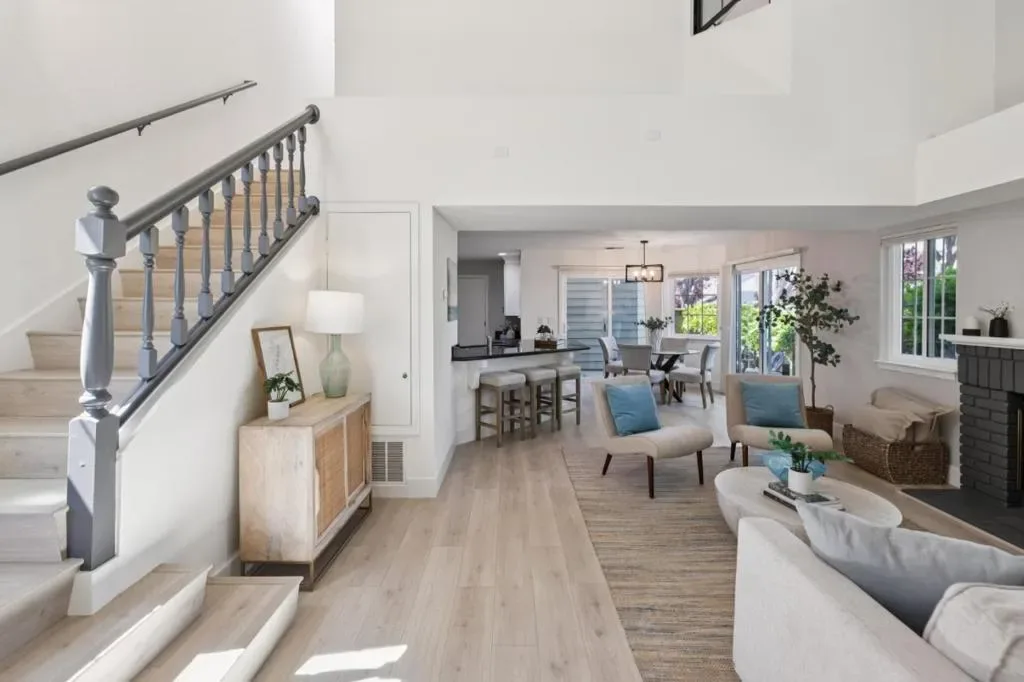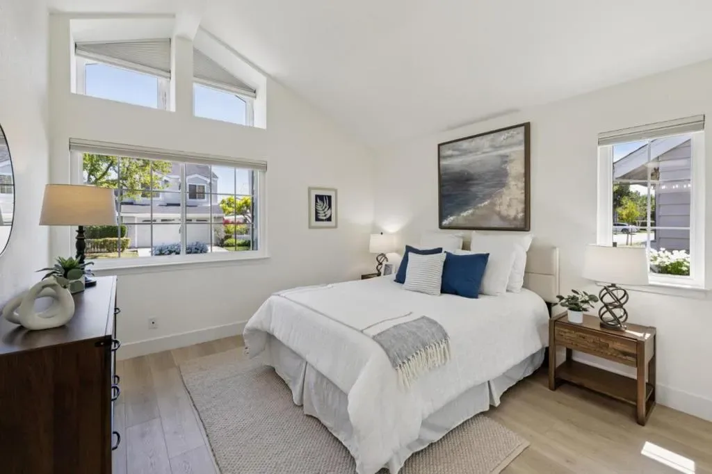 Beautifully refreshed home in the desirable Beacon Shores community. A charming white picket fence welcomes you into a bright, airy interior featuring soaring ceilings, abundant natural light, and a striking fireplace. The open floor plan flows seamlessly from the living area to the dining space with dual sliding doors leading to a fenced patio, ideal for indoor-outdoor living. The updated kitchen boasts quartz countertops, an expansive breakfast bar, ample cabinetry, and new stainless steel appliances as well as a handy desk area. Two spacious primary suites offer comfort and privacy, including an entry-level suite and an upper-level retreat, both with updated ensuite bathrooms. Stylish entry level powder room for guest use. Private landscaped yard. Additional features include luxury plank flooring, central A/C & heating, smart home systems, and attached two-car garage with laundry. Located near parks, lagoons, trails, shopping, dining, Caltrain, and major highways. HOA community pool & spa. This home is ready to move in!! Community Pool & well maintained neighborhood. Open House : Thurs. 4/9 4:30-6:30, Sat 4/11 & Sun 4/12 1:30pm-4:00pm