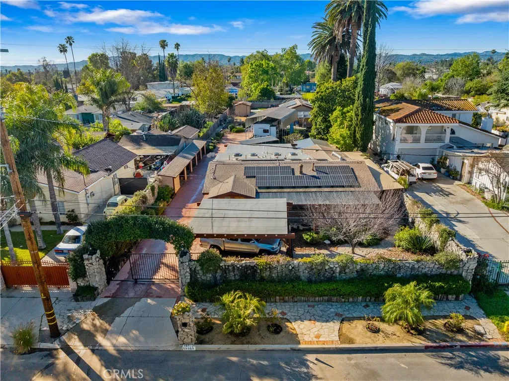 Opportunity is knocking! Bring your investors, architects, and imagination to take advantage of this 21,974 sq ft lot in Reseda Ranch. Gated Oasis frames this upgraded yet rustic house with lots of wood accents, wood floors, a wood burning stove, smooth ceilings, recessed lighting. Yet there is also granite counters, double sink bathrooms, tile spa tub & open shower with sky lights, decorated glass windows, beautiful patio area, and so much more. Main house has converted garage, and carport, plus solar panels. Guest house also has solar panels, plus there are extra storage buildings. Still with lots of room for family compound, ADUs, pool, and more. Buyers to rely on their own investigation regarding permits, feasibility of best use, and number of possible homes and structures the lot can accomodate.