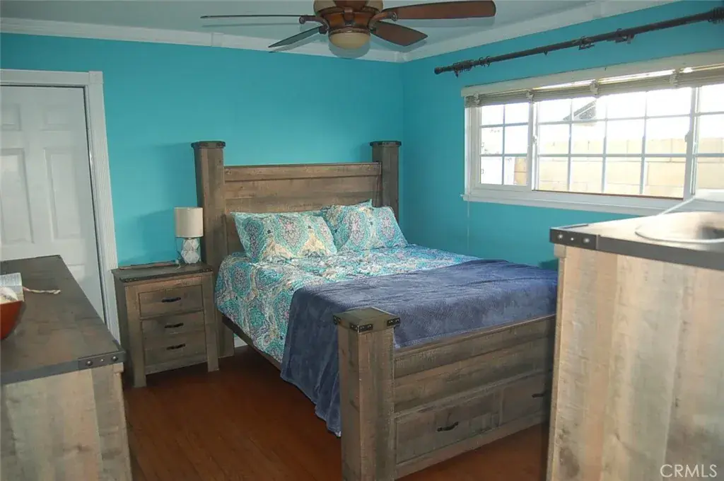 A smart buy! Welcome to this attractive single-level 4BD/2BA home in a prime location close to schools, shopping, and easy commuter access. The open, airy floor plan includes a formal living room with designer ceramic floors, a dramatic floor-to-ceiling brick fireplace, cathedral ceilings, and expansive windows. The modern kitchen features quartz countertops, stainless steel appliances including a gas range and built-in microwave, and opens to a covered patio—ideal for outdoor entertaining. Enjoy a private rear yard with block walls, raised planter beds, expansive low-maintenance hardscape, and a storage shed. The interior offers four spacious bedrooms, including a primary suite with private bath and walk-in shower. Situated on a 7,000+ sq ft lot with a 2-car garage and laundry hookups. Move-in ready, beautifully maintained, and includes an energy-efficient solar system. Don’t miss this great opportunity!