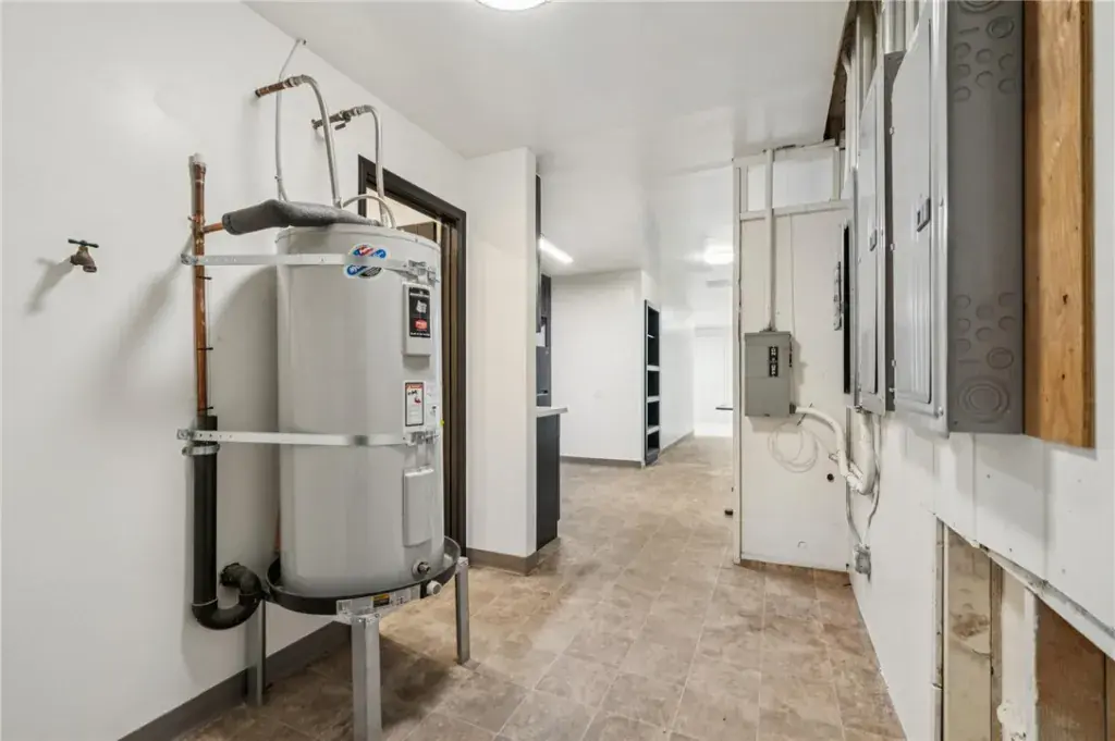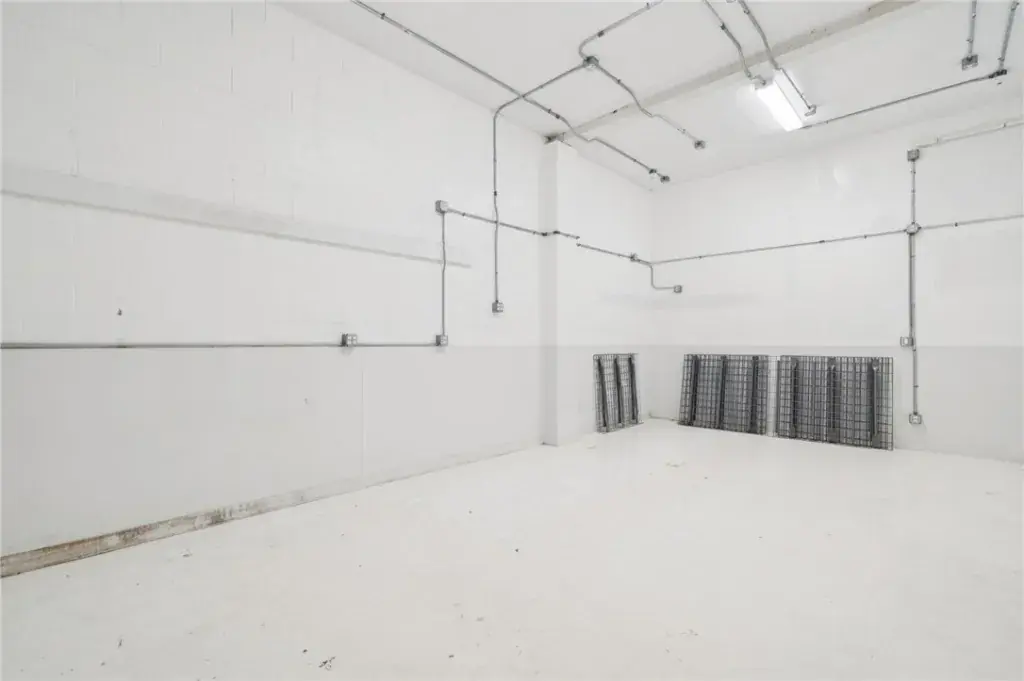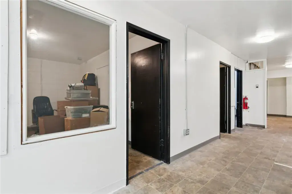 The main level features a welcoming entry foyer, multiple private offices, a break room, and a full kitchen — supporting both client-facing and day-to-day operational needs. The building is equipped with three half baths and two full baths, accommodating a sizable workforce.