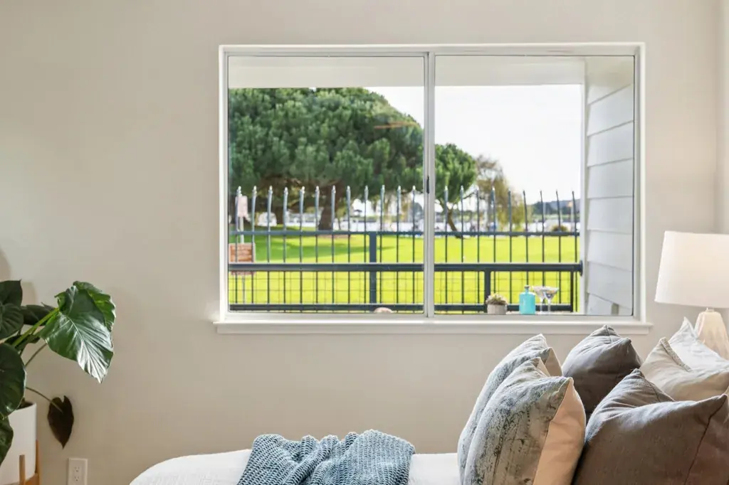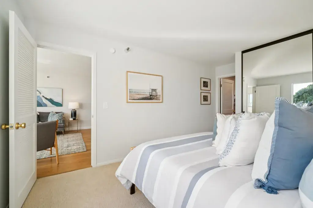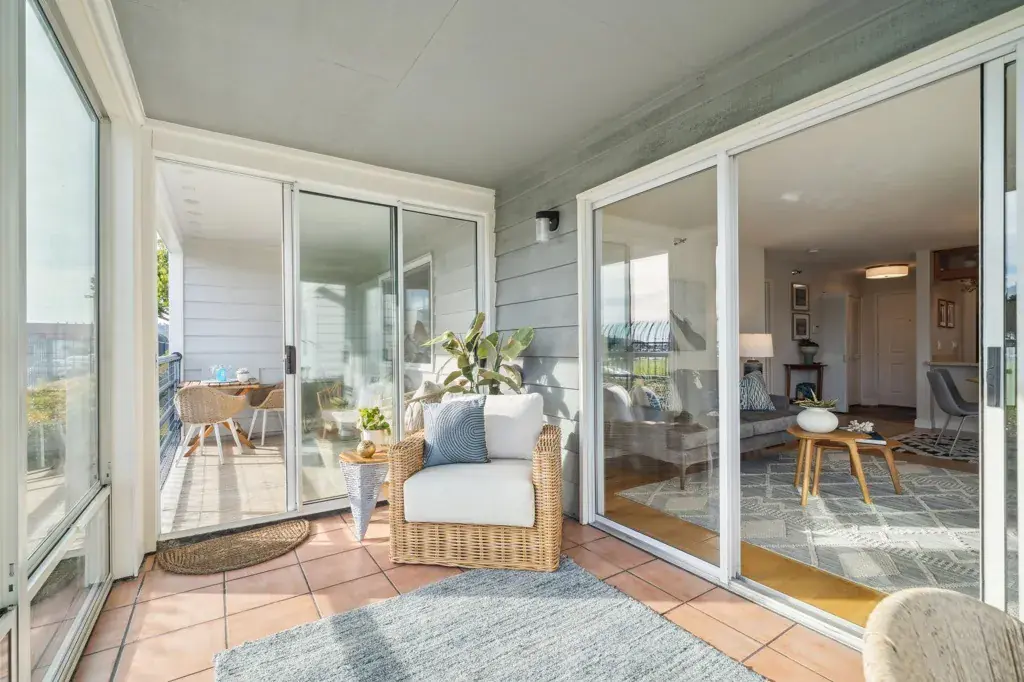 Welcome to this beautifully remodeled, single-level, 2 bedroom, 2 bath condo in the picturesque Marina Bay community. From the moment you enter, the foyer and kitchen impress with stunning slate floors and exceptional craftsmanship. The thoughtfully designed kitchen and bathrooms feature solid wood cabinetry and elegant stone countertops. Soak in expansive, south-facing views of the waterfront park, marina, SF Bay, and iconic city skyline—every room enjoys abundant natural light and breathtaking scenery. Unwind each evening with unforgettable sunsets from your enclosed patio, which seamlessly connects to an open deck for effortless indoor-outdoor living year-round. The layout is ideal: bedrooms are located on either side of the unit, with the living space in between. Both spacious bedrooms offer lovely remodeled ensuite bathrooms. The unit includes two parking spaces—one deeded covered carport with an EV charging station and one additional uncovered space—along with extra storage, all within a gated community. Ideally located near restaurants, breweries, shops, the San Francisco Bay Trail, the Richmond Ferry, Sunday Farmers Market, and more, this hidden gem offers resort-style living, like you’re on vacation everyday in this warm, welcoming waterfront enclave.