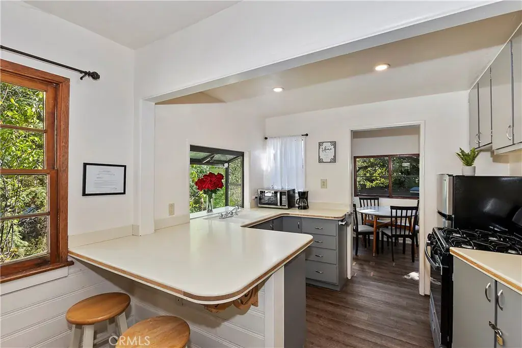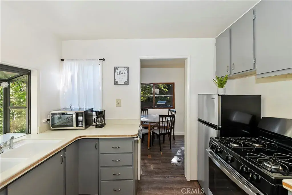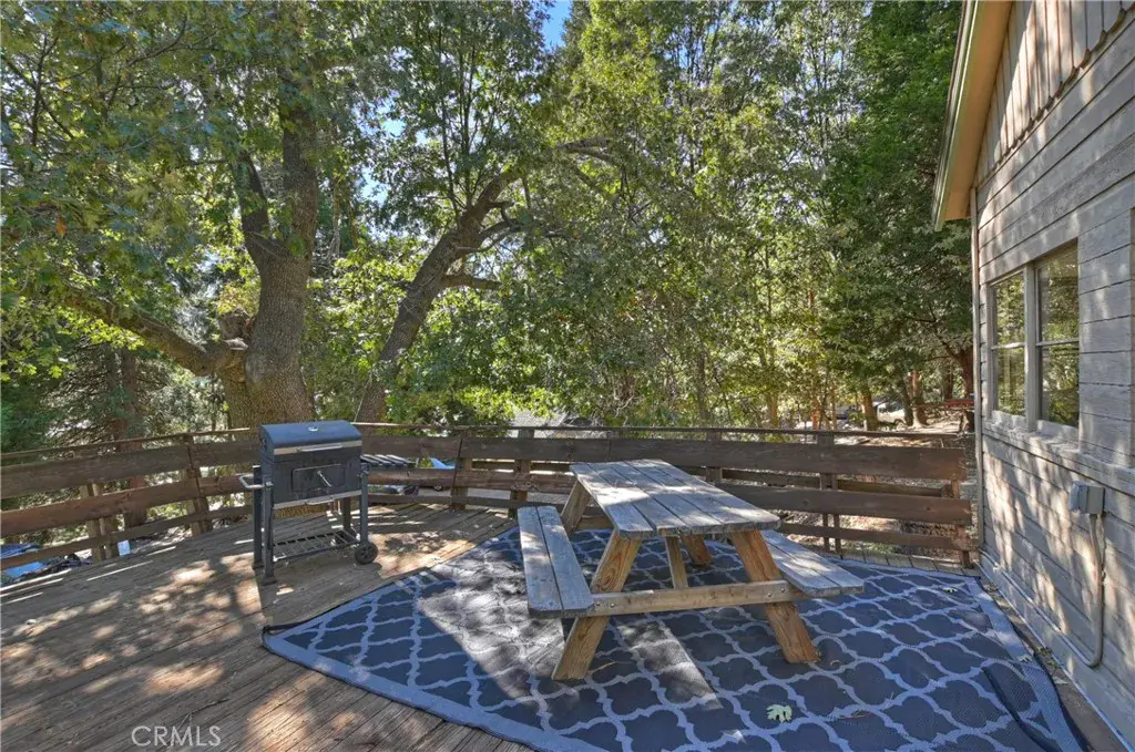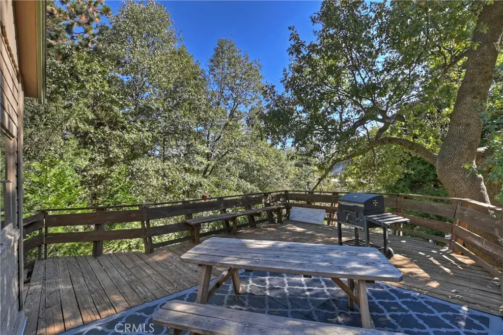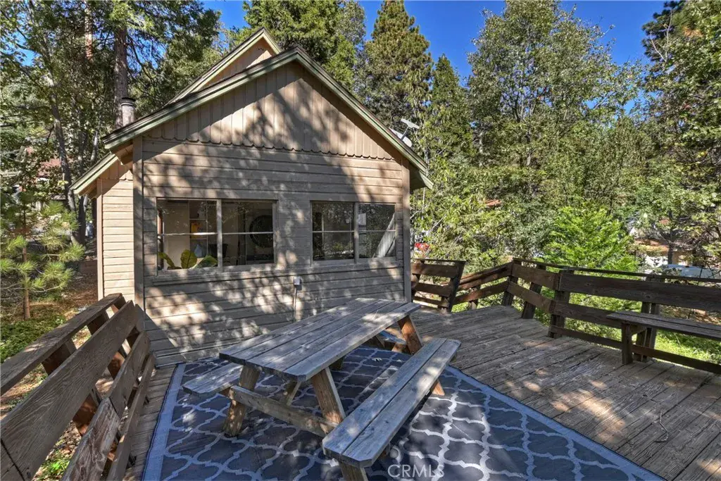 Vintage Storybook Retreat! Experience Peace in the Mountains in this Sweet Charmer – Thoughtfully Updated with Modern Comforts and Conveniences. Wonderful Cottage Atmosphere with Wood Stove in the Living Room and A/C for All Season Enjoyment. Open Kitchen with Newer Appliances. The Dining/Sun Room seconds as a Laundry Room with Auxiliary Pantry Area and Storage for the Kitchen, This Space Also Makes for a Lovely 2nd Bedroom or Sleeping Area. Spacious Bedroom Upstairs with Extra Sleeping Area. There is a Fantastic Deck off the Kitchen – Surrounded by Stunning Trees with Beautiful Chirping Birds and Offering Gorgeous Ridgeline Views. Plenty of Parking – A Huge Benefit – The Adjacent Flat Vacant Lot is INCLUDED – Giving You A Great Sense of Privacy – Use it for Extra Parking or Future Expansion. Leave All of Your Cares Behind. Come Experience the Bright Stars at Night and the Crisp Cool Mountain Air. Easy to Get to but You’ll Never Want to Leave! With Great Proximity to Local Attractions and Area Destinations, including – Lake Arrowhead Village, Sky Park at Santa’s Village, Lake Gregory Recreational Lake and Park, Snow Valley, Local Farmers Markets and Endless Hiking Trails in the San Bernardino National Forest. Situated in a Four Season Mountain Resort on a County Plowed, Paved and Maintained Road. Home Has a Great Track Record as a Busy Air BnB Too. Make it Yours Today! Located within 2 hours of Most Southern California Cities and Suburbs – The Mountains Are Calling and They’re Closer Than You Know!