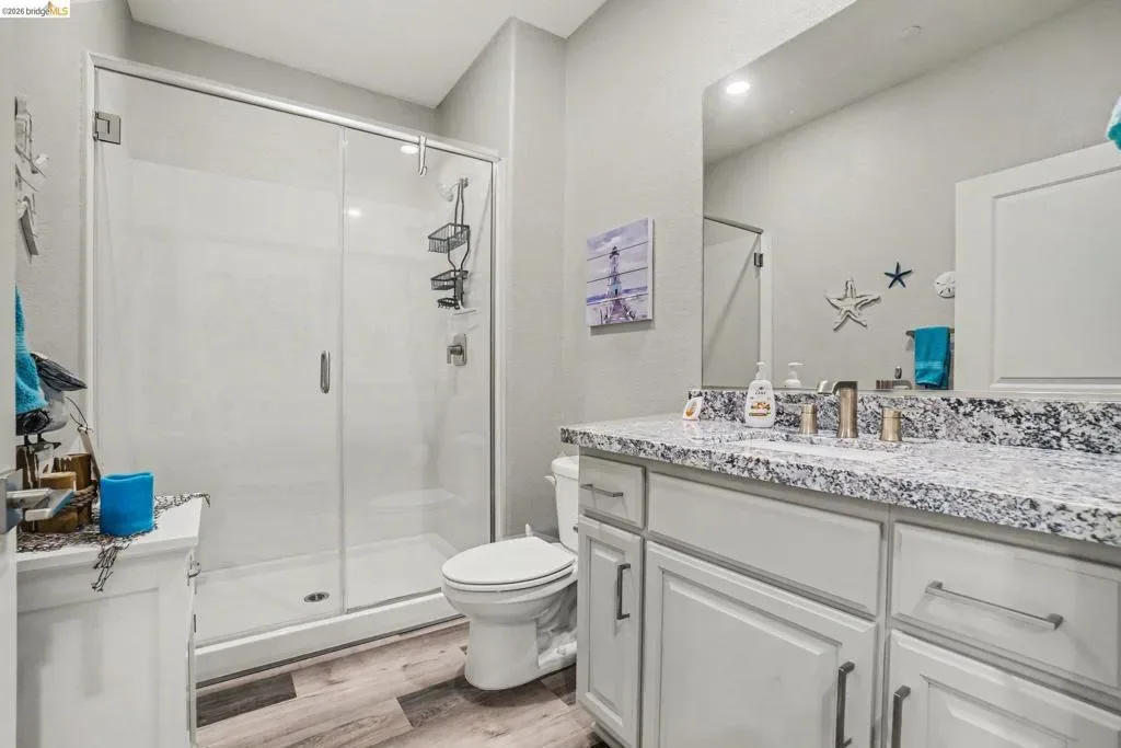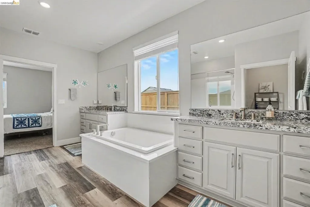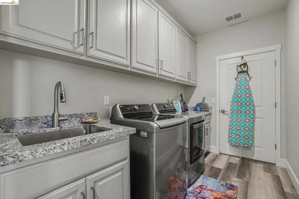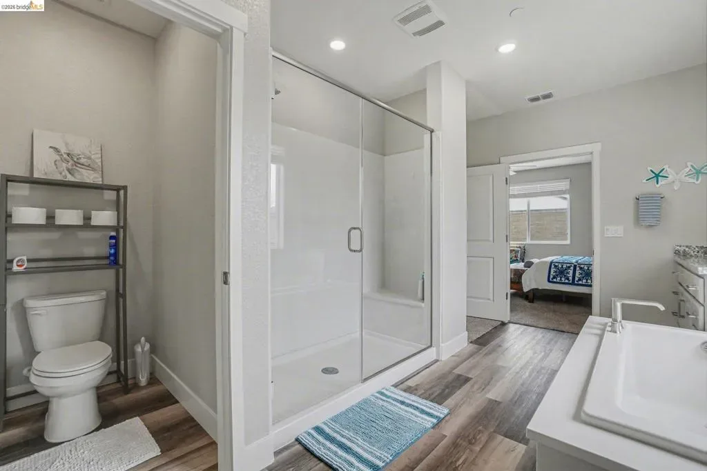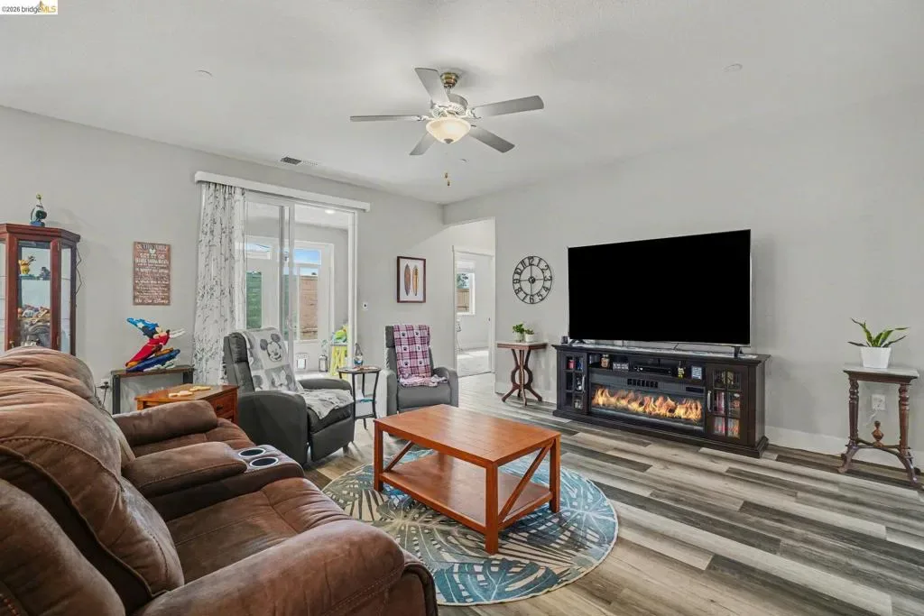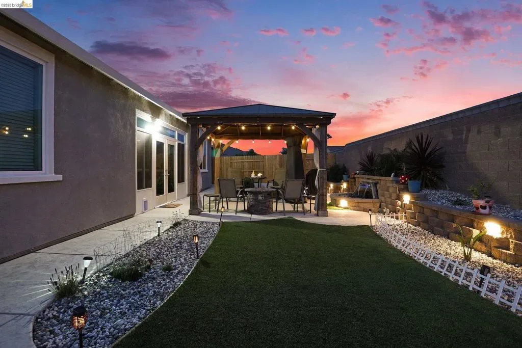 Welcome to resort-style living in the sought-after Summit at Liberty, a premier 55+ gated community in Rio Vista. Better than new, this beautifully maintained Roosevelt model offers the perfect blend of comfort, efficiency, and thoughtful upgrades. Featuring owned solar with 20 panels and drought-tolerant, low-maintenance landscaping with full privacy fencing, this home is designed for easy living inside and out. Step inside to find stylish laminate flooring, upgraded soft close cabinetry, and a bright eat-in kitchen with a massive pantry-perfect for both everyday living and entertaining. The spacious primary suite is a true retreat, featuring an oversized walk-in closet conveniently connected directly to the laundry room and a true spa like en suite with deep soaker tub and dual sinks. The open layout flows seamlessly into a stunning enclosed California room, creating additional year-round living space. Outside enjoy your private backyard oasis with stamped concrete, artificial turf, a pergola, and a tranquil waterfall feature—ideal for relaxing or hosting guests. Additional highlights include a water softener system and pride of ownership throughout. Enjoy resort-style amenities including a clubhouse, pool, fitness center, and more. This is the one you’ve been waiting for!