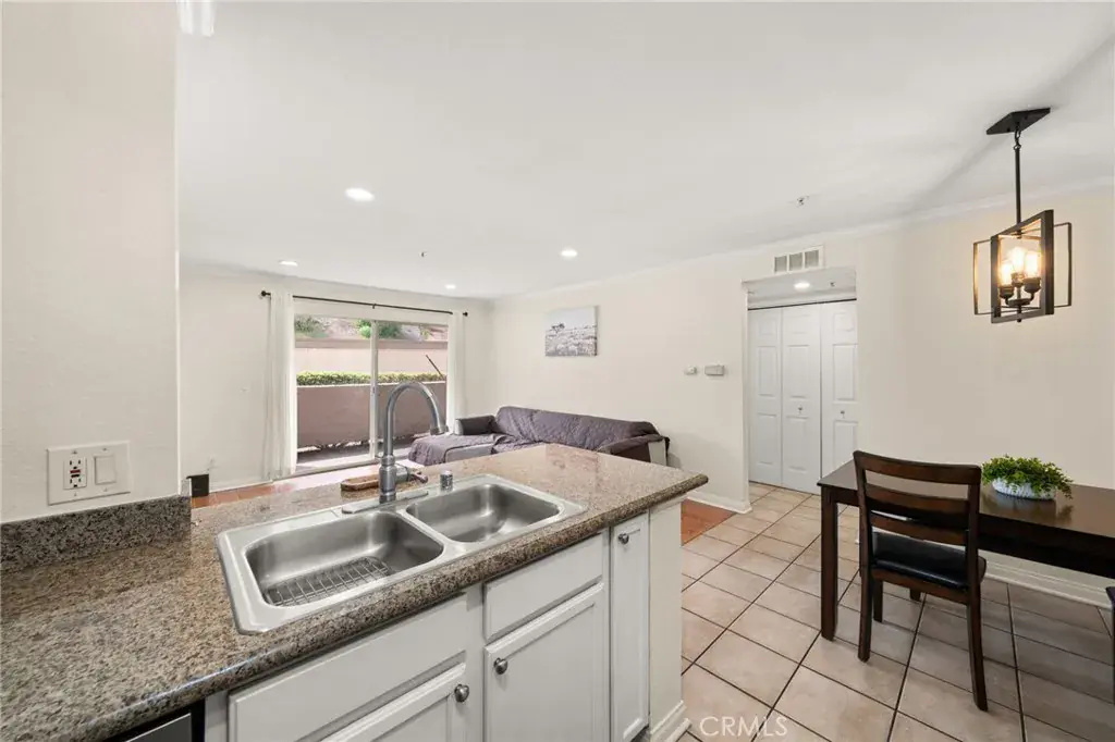 Beautiful Ground floor Condo at Triana Corona Ranch community, located in the very desirable Corona Hills! This End unit condo features 1 bedroom and 1 bath with a spacious open floor plan. Main living area opens to a private porch area perfect for relaxing and entertaining. The master bedroom also opens to the porch area, allowing for multiple access points. The kitchen has been upgraded with granite countertops, and stainless-steel appliances. Laundry closet inside the unit for convenience. The bathroom has also been upgraded with granite countertops, tiled shower and new shower doors. Brand new AC unit has just been installed to keep you cool in the summer. This unit includes 1 carport space and a lot of visitor parking for you to enjoy. Residents have access to beautiful community amenities including a sparkling pool/spa, fitness center, clubhouse, BBQ areas, and gated entry for privacy and security. Located minutes from shopping, dining, and major 91 and 15 freeways. Low tax rate at 1.017% and HOA community amenities include landscaping, trash, sewer, and water. Schedule your showing today.