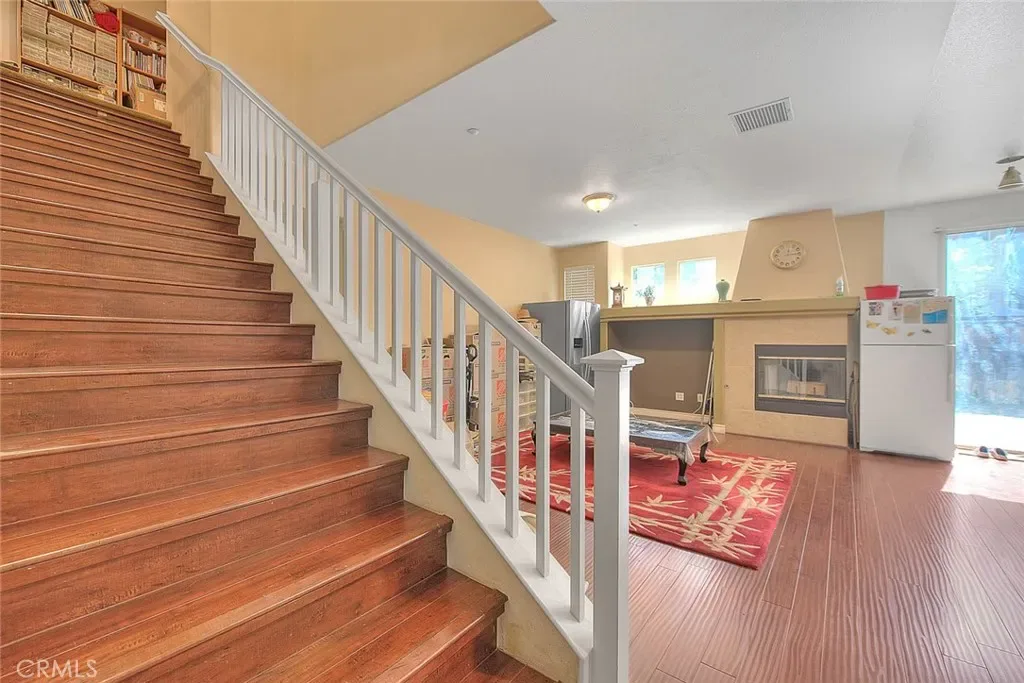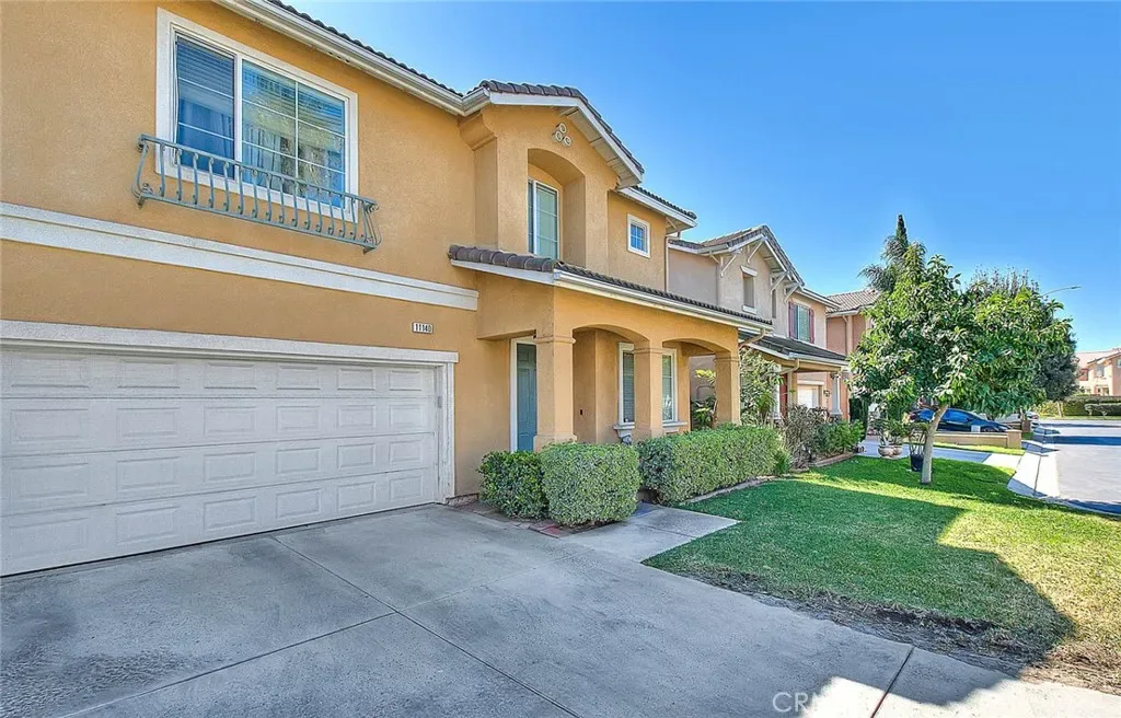 Spacious 5-bedroom home offering exceptional potential and flexible living space in a gated HOA community located in the prestigious Riverwalk area of La Sierra! This generously sized residence features 4 bedrooms upstairs plus a downstairs den currently used as a bedroom (no closet), providing options for guests, office, or multi-generational living. The kitchen is equipped with upgraded Corian countertops and a full appliance suite — gas stove, dishwasher (and fridge which may be purchased separately) all purchased in July 2025. Enjoy year-round comfort with central air and heat, plus gas cooking and heating. The large primary suite offers plenty of space to unwind, a generous walk-in closet and LARGE master bath complete with a dual-sink vanity, and separate tub and shower. Additional highlights include upstairs laundry, automatic sprinkler systems in the front and backyard and convenient under-stair storage.