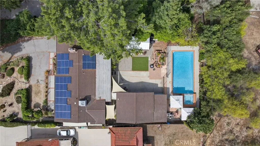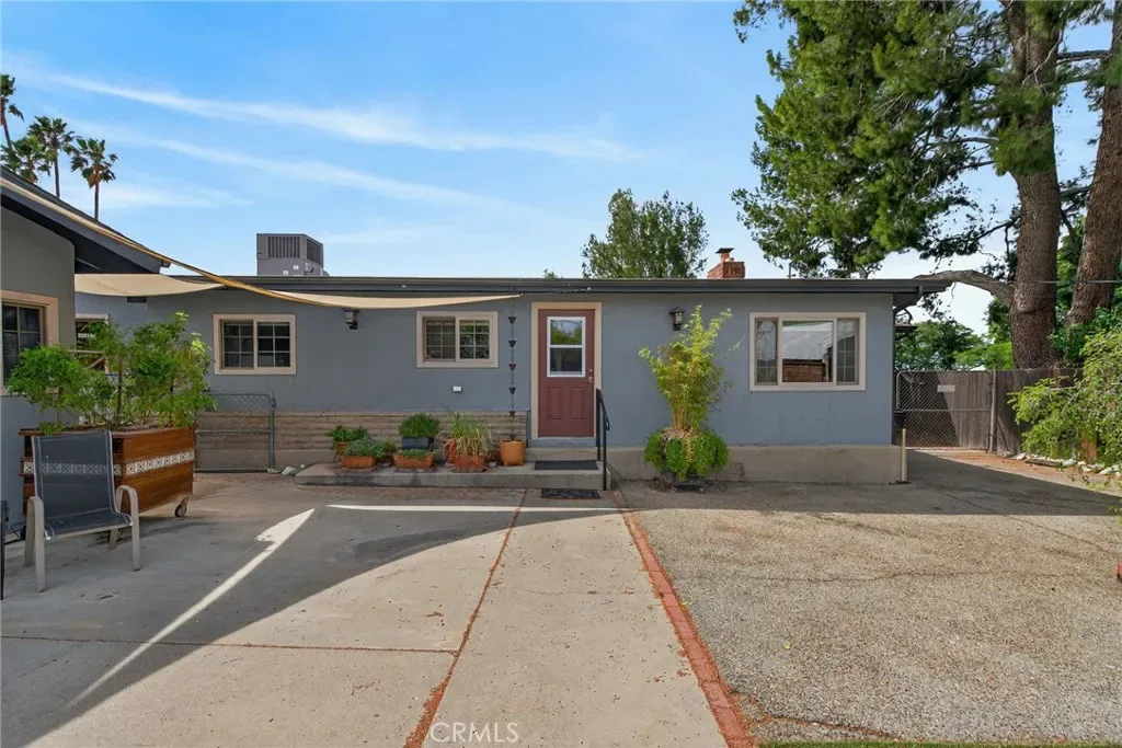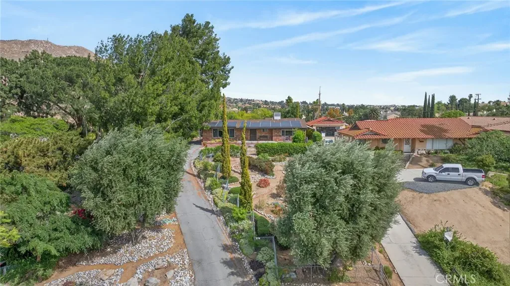 Located in the University Heights neighborhood of Riverside, this distinguished mid-century residence provides privacy, generous living space, and impressive views. A lengthy, secluded driveway leads to a meticulously maintained single-story home, thoughtfully designed for both comfort and elegance. The front patio offers panoramic vistas of the surrounding area, the city of Riverside, and Mount Baldy. Entry through a custom hardwood door opens into a spacious great room featuring an open beam ceilings and wood flooring. The heart of the home features a floor-to-ceiling brick fireplace, creating a warm and inviting focal point in the living area. Large windows frame the fireplace, enhancing the serene, mid-century atmosphere. Expansive front windows allow abundant natural light and showcase exterior views. The adjoining formal dining area is seamlessly integrated with the recently updated kitchen, which includes ample cabinetry, extensive counter space, and modern stainless-steel appliances. The family room addition features overhead inset lighting, a built-in buffet, and a convenient pass-through window—ideal for casual meals or morning coffee. The property’s three bedrooms are all spacious and bright with energy-efficient ceiling fans in each one. A separate indoor laundry room enhances functionality. The nearly half-acre grounds are landscaped with desert-inspired elements, offering a scenic garden path along the hillside. The backyard includes a pool and spa, with cross-fencing for security and a shaded canopy to create a serene retreat. An artificial grass play area serves as an excellent space for children or pets. The detached three-car garage with workshop provides additional storage and workspace, complemented by a large carport for shaded parking. The property also benefits from an energy-efficient leased solar system. Blending classic mid-century architecture with contemporary amenities, this home offers an exceptional living environment. Its proximity to shopping, UCR, transportation, and other conveniences further enhances its appeal.
