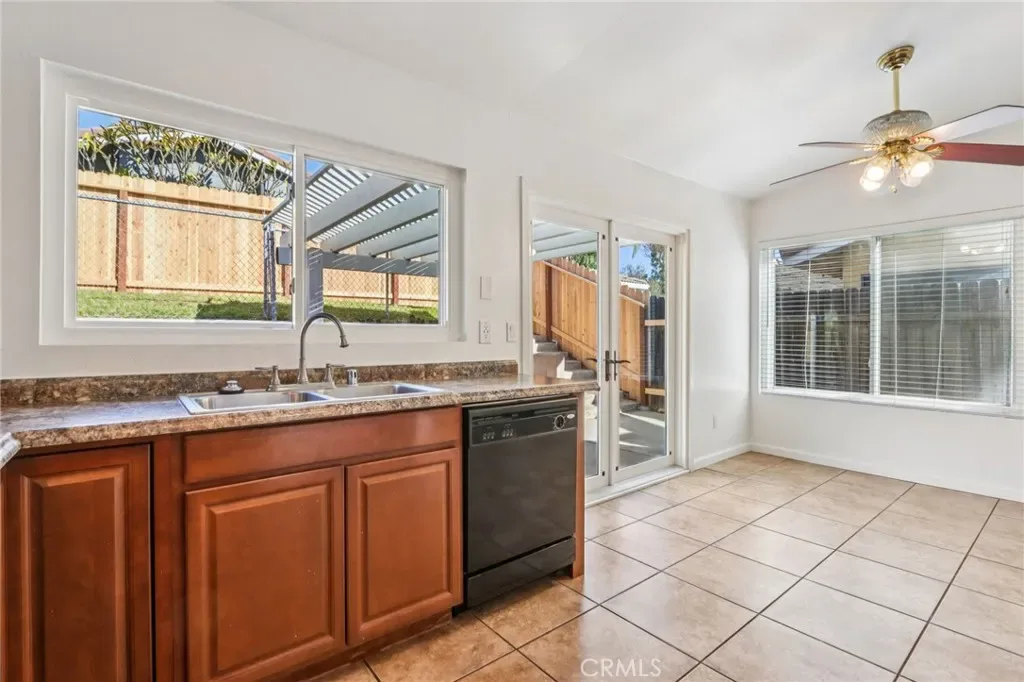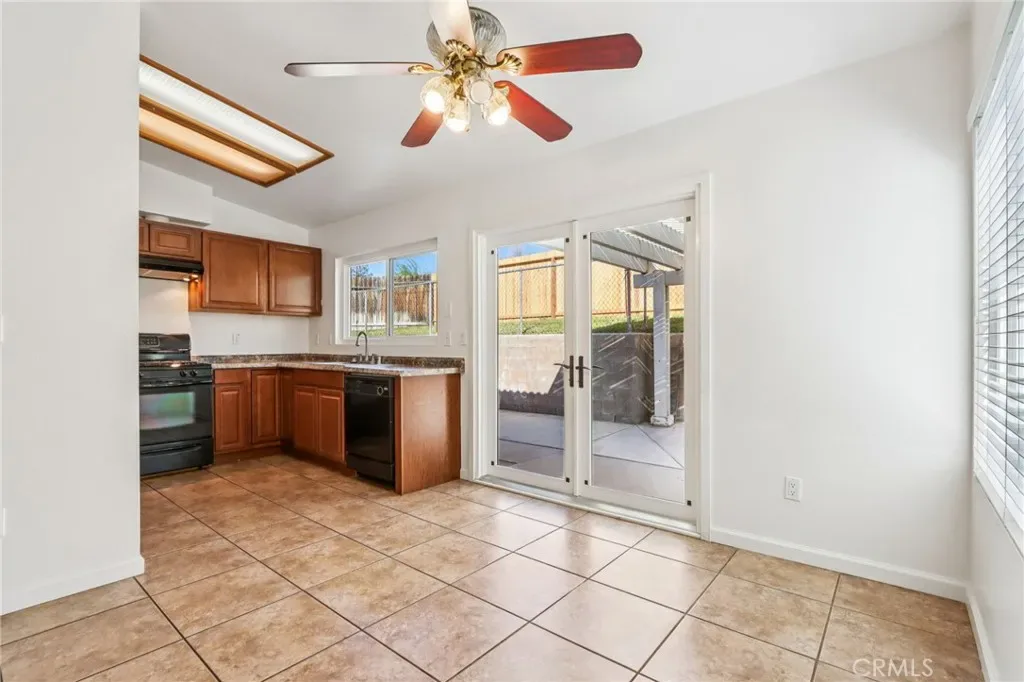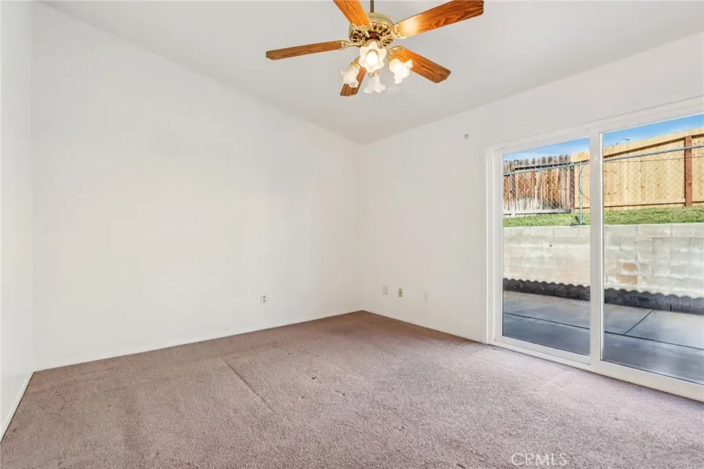 Glass sliding doors lead to the backyard, providing easy indoor-outdoor flow and a great setting for outdoor dining, entertaining, or gathering around a fire pit on cool evenings. The outdoor space offers plenty of room to create your ideal setup for relaxing or hosting guests.
