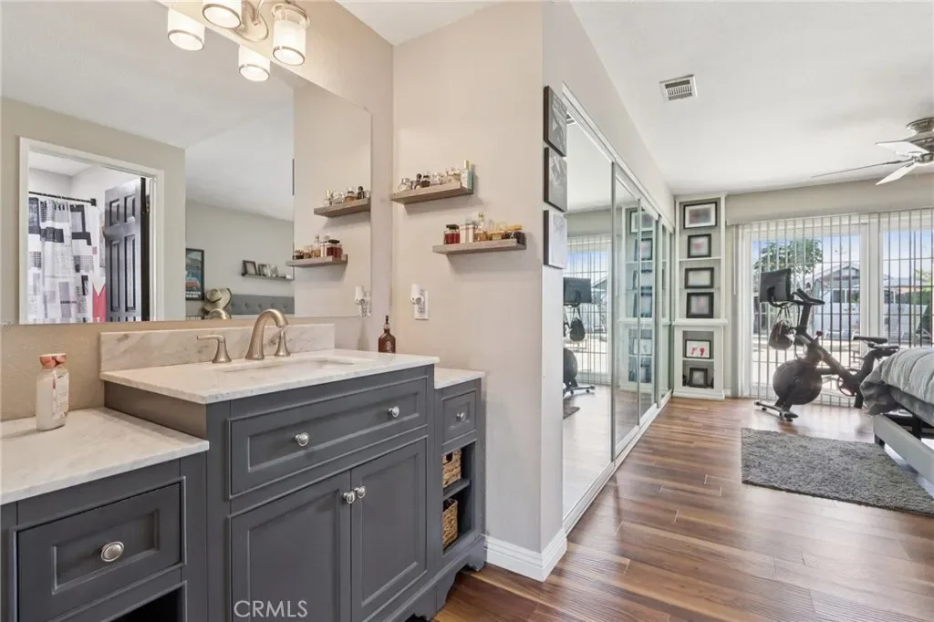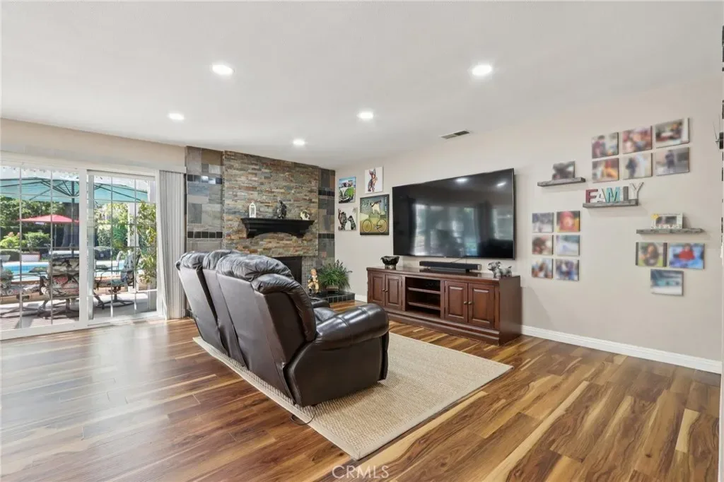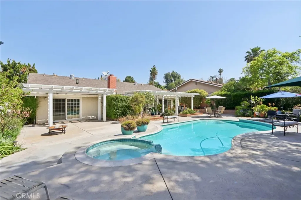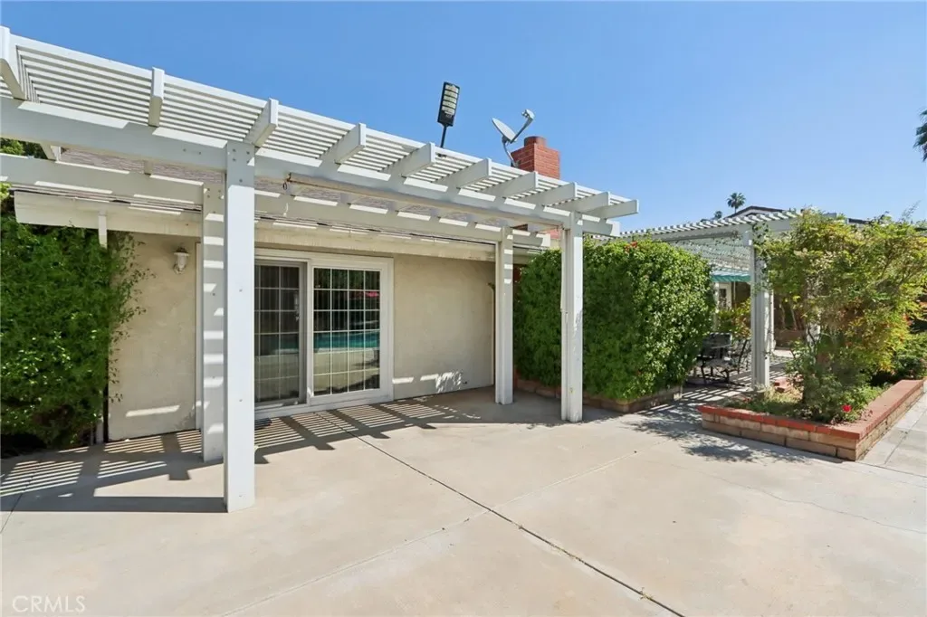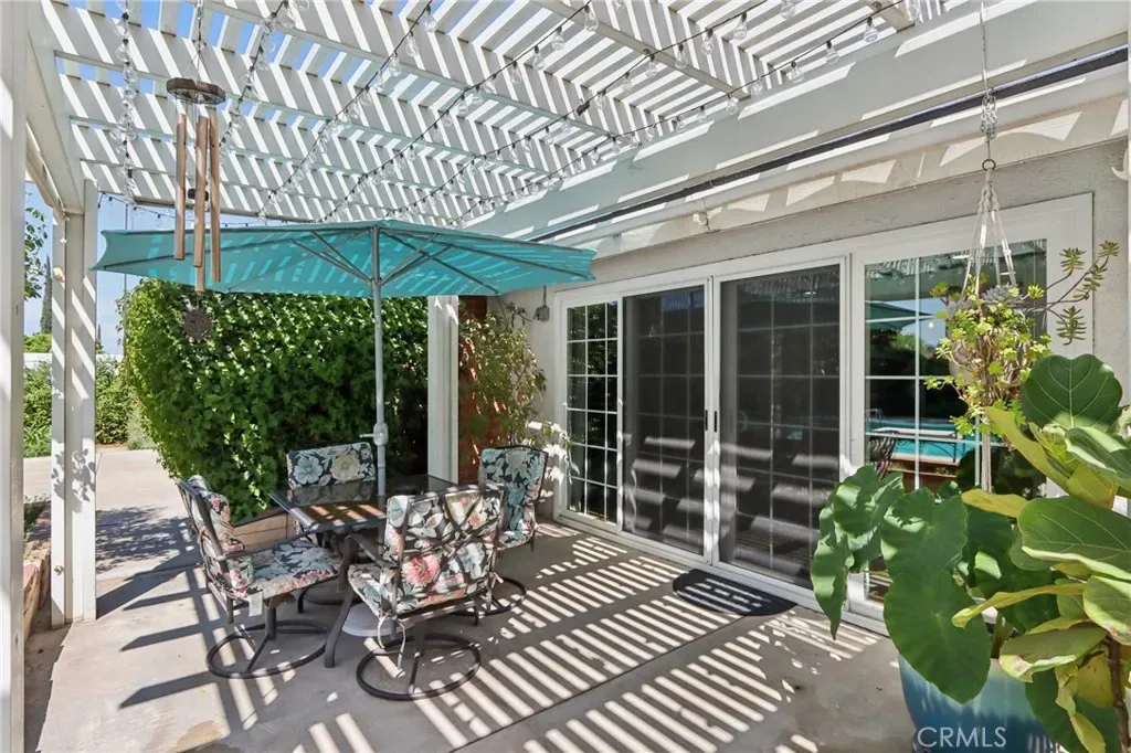 Welcome to this gorgeous Canyon Crest dream home, filled with charm, character, and exceptional indoor-outdoor living. This single-story pool home showcases stunning floor-to-ceiling Andersen windows(carry a transferable lifetime warranty) and double sliding doors that open to a true backyard oasis, flooding the home with natural light. Inside, you’ll find richly hued vinyl flooring throughout and a spacious, open layout designed for both comfort and entertaining. The large living room features a beautiful stone fireplace and flows seamlessly into the dining area. The remodeled kitchen is highlighted by natural stone countertops, abundant fresh white cabinetry, a tiled backsplash, newer appliances, and a large center island with built-in microwave, drawers, wine fridge, and bar seating. A pantry adds extra storage. The well-sized primary suite offers mirrored closet doors, custom built-in bookshelves, and a large sliding glass door leading to a private patio. The en-suite bathroom features a stand-alone vanity and a relaxing soaking tub. Two additional spacious bedrooms share a secondary bathroom with a tiled shower and direct access to the pool area—perfect for convenient outdoor living. Go outside to a beautifully landscaped backyard complete with a sparkling pool and spa, expansive grass area, two pergola-covered patios, and a garden shed/workshop—ideal for entertaining or relaxing in your own private retreat. Additional highlights include RV parking with a dedicated electrical hookup and a prime location near UCR, shopping, dining, schools, and easy access to the Interstate 215. This home truly has it all.