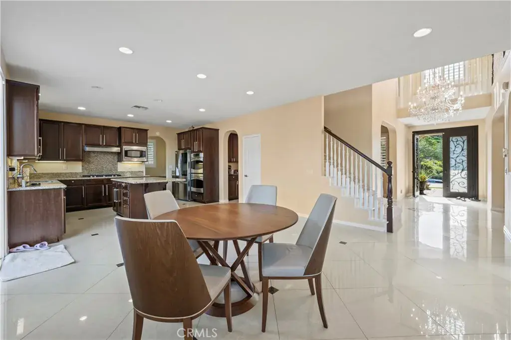 Nestled within the prestigious Sierra Bella community, this magnificent estate presents an unparalleled blend of elegance, space, and serene, fruit-filled privacy. Situated on a sprawling half-acre lot with beautifully landscaped gardens and many fruit trees, this home offers over 3,200 square feet of thoughtfully designed living space, perfect for both grand entertaining and comfortable family living. A grand formal entry, illuminated by a stunning chandelier, welcomes you and flows effortlessly into the formal living and dining rooms—ideal for hosting memorable gatherings. The heart of the home is an expansive great room, featuring rich 24″x24″ porcelain tile, a cozy fireplace, and abundant recessed lighting. It opens seamlessly into a chef’s dream kitchen, complete with a large island, walk-in pantry, granite countertops, and stainless-steel appliances including a double oven and 5-burner gas cooktop. The main floor also includes a convenient bedroom and full bath, perfect for guests or a home office. Upstairs, a versatile loft leads to three additional bedrooms, another full bath, and a breathtaking master suite. The master retreat features picturesque backyard views, a spa-like bath with dual vanities, a soaking tub, separate shower, and his-and-hers walk-in closets. Additional highlights include a downstairs laundry room and a spacious 3-car garage. Located just minutes from the 91 Freeway, La Sierra Metrolink Station, and the California Citrus State Historic Park, this home provides easy connectivity to Orange County and Los Angeles while offering a peaceful, private sanctuary. Don’t miss the opportunity to own this exceptional Sierra Bella residence. Schedule your private tour today!