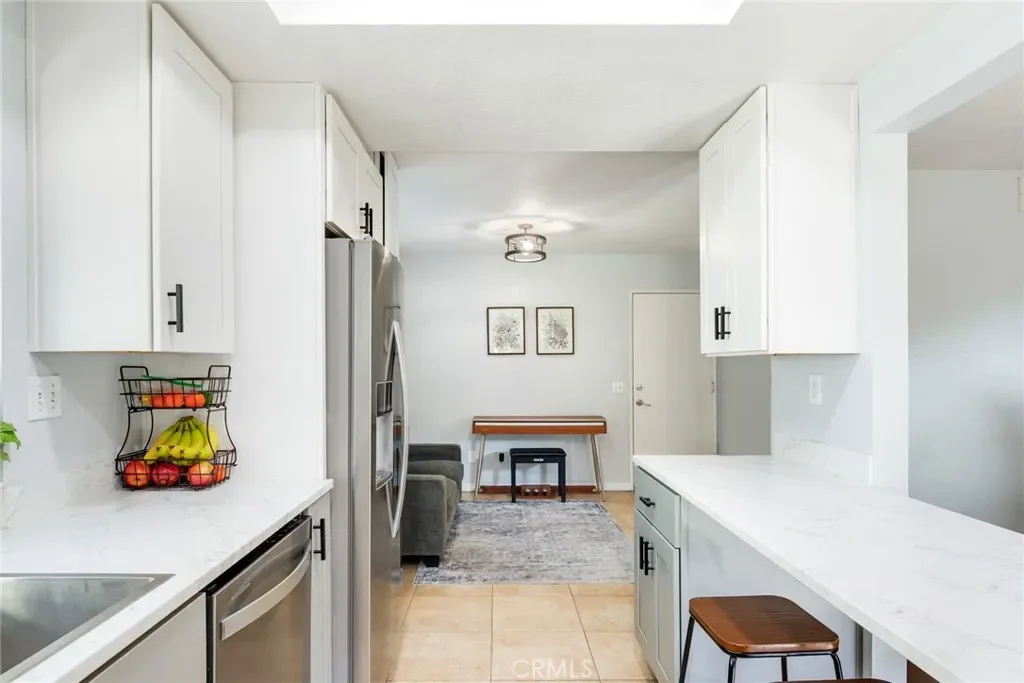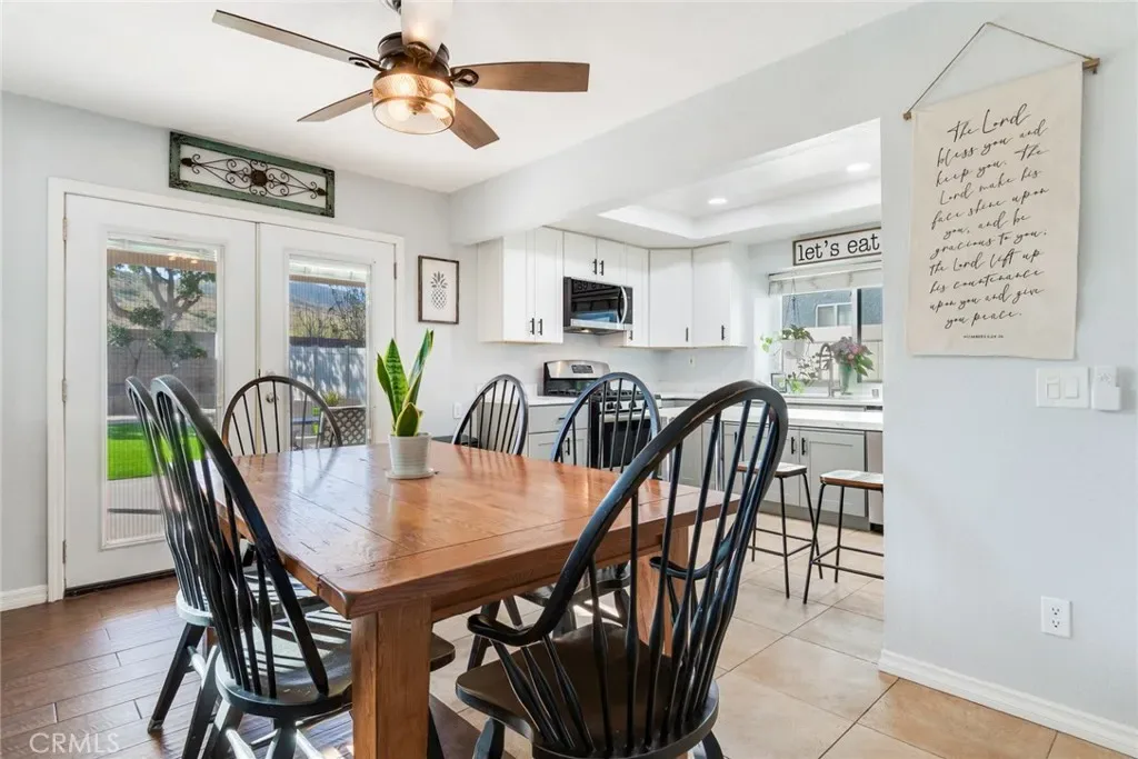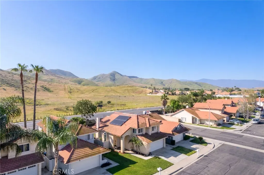 Located on a cul-de-sac, this beautiful home offers a desirable floor plan, scenic hill views, and access to fantastic community amenities in a location convenient to both Riverside and Corona. Step inside to a bright and welcoming formal living room with soaring vaulted ceilings and a cozy fireplace, creating a warm and inviting gathering space filled with natural light. The living room flows seamlessly into the dining area and a beautifully updated kitchen designed for both style and functionality. The remodeled kitchen is a standout feature, showcasing newer cabinetry, stainless steel appliances, recessed lighting, custom fixtures, and a large farmhouse-style sink positioned beneath the window. A convenient center island with breakfast bar seating provides additional prep space and casual dining, making this kitchen perfect for everyday living and entertaining. Just off the kitchen is a separate family room/den, offering flexible living space ideal for a media room, home office, or playroom. French doors open from the dining area to the backyard, creating wonderful indoor-outdoor living. The spacious yard features artificial turf, a large covered patio and beautiful views of the surrounding hills, providing the perfect setting for relaxing evenings, weekend barbecues, and outdoor gatherings. With plenty of space for play, gardening, or entertaining, this backyard is designed to be enjoyed. All three bedrooms are located upstairs, offering privacy from the main living areas. The primary bedroom is positioned at one end of the hallway, while the two additional bedrooms are located at the opposite end, creating a comfortable and functional layout. Additional highlights include ceiling fans throughout, leased solar panels for energy efficiency, and an owned water softener system. Residents of this community enjoy access to resort-style HOA amenities including a pool, spa, picnic areas, barbecue facilities, and tennis courts, enhancing the lifestyle this neighborhood offers. Ideally situated near the Riverside/Corona border with convenient access to the 91 Freeway, this home offers an excellent location for commuters while still enjoying the comfort of a neighborhood setting. With its cul-de-sac location, updated kitchen, newer roof, vaulted ceilings, flexible living spaces, water filtration system, and scenic backyard views, this home presents a wonderful opportunity in one of Riverside’s desirable communities.