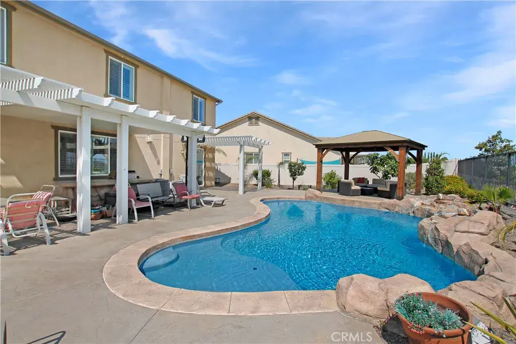 VIEW! POOL! NEXT GEN/ADU! Welcome to 13122 Capricornio Street, a beautifully maintained residence nestled in a tranquil Riverside neighborhood. This exceptional property offers versatility, comfort, and impressive amenities for multi-generational living or potential rental income. The main home features 5 spacious bedrooms and 3-1/4 bathrooms with an open-concept layout that flows seamlessly from the updated kitchen to the light-filled living and dining areas—perfect for both daily living and entertaining. A standout feature of this home is the attached 2-bedroom Next-Gen suite with its own private entrance, full kitchen, living area, and bathroom—ideal for extended family, guests, or independent living arrangements. Step outside to a backyard designed for enjoyment and relaxation, where you’ll find a sparkling pool with it’s own solar heating, covered patio, large pergola, and beautifully maintained landscaping. Enjoy serene panoramic views of the surrounding hills and city lights, offering a peaceful backdrop to your outdoor gatherings. Located near parks, schools, and shopping, this property combines thoughtful design, energy-efficient upgrades, and flexibility to accommodate a variety of lifestyles—all in one of Riverside’s most desirable communities.