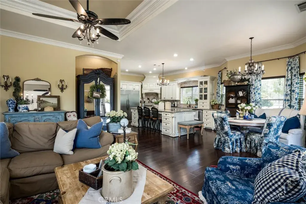 A Rare Legacy Estate in Alessandro Heights! Gated family compound on nearly 3 acres featuring two custom homes designed by renowned architect Donald J. Fears. The 4,100+ sq. ft. main home showcases elegant French Country style, 3 main-floor bedrooms, chef’s kitchen, formal living/dining rooms, family room with fireplace, and upstairs bonus suite with kitchenette & bath. The guest cottage (approx. 1,500 sq. ft.) offers 3 bedrooms, 2 baths, fireplace, covered patio & 2-car garage—perfect for in-laws or rental income. Property includes a massive detached workshop/garage with vehicle lift, two large shops (1,800 & 1,500 sq. ft.), and RV parking. Surrounded by lush landscaping, mature trees & mountain views. No HOA, low taxes. A one-of-a-kind multigenerational sanctuary where privacy, craftsmanship & comfort meet. Septic and termite clearance completed. Rental income or entertaining potential. See 3D tour of entire property.