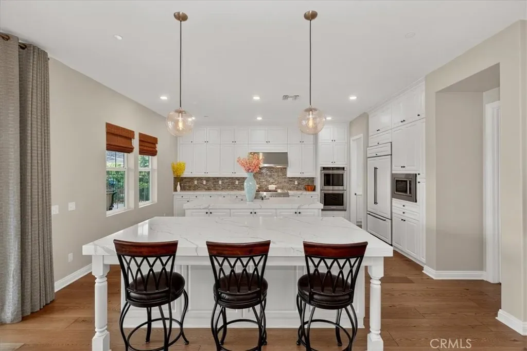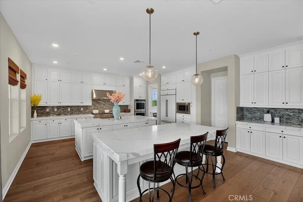Step inside to discover stunning real hardwood floors ($100K+), designer tile bathrooms, and a truly open-concept layout designed for both everyday living and grand-scale entertaining. The gourmet kitchen is a chef’s dream featuring dual oversized islands, quartz countertops, high-end stainless appliances, upgraded white cabinetry, custom built-in fridge, designer backsplash, and two massive walk-in pantries. A second hidden kitchen offers even more prep space with another cooktop, refrigerator, dishwasher, and cabinetry—perfect for entertaining or catering.