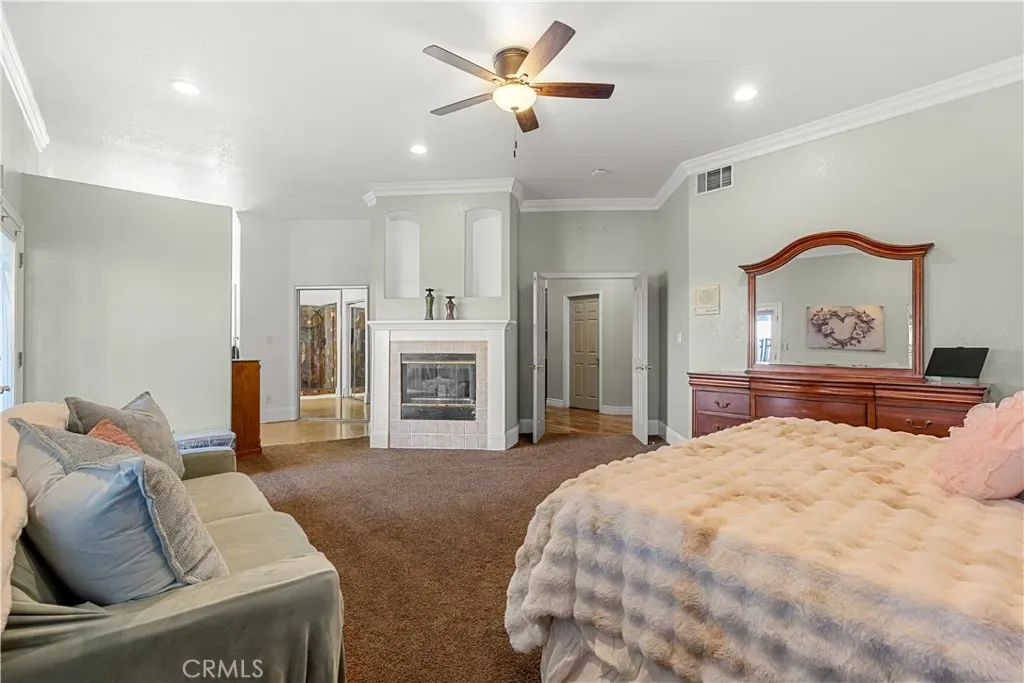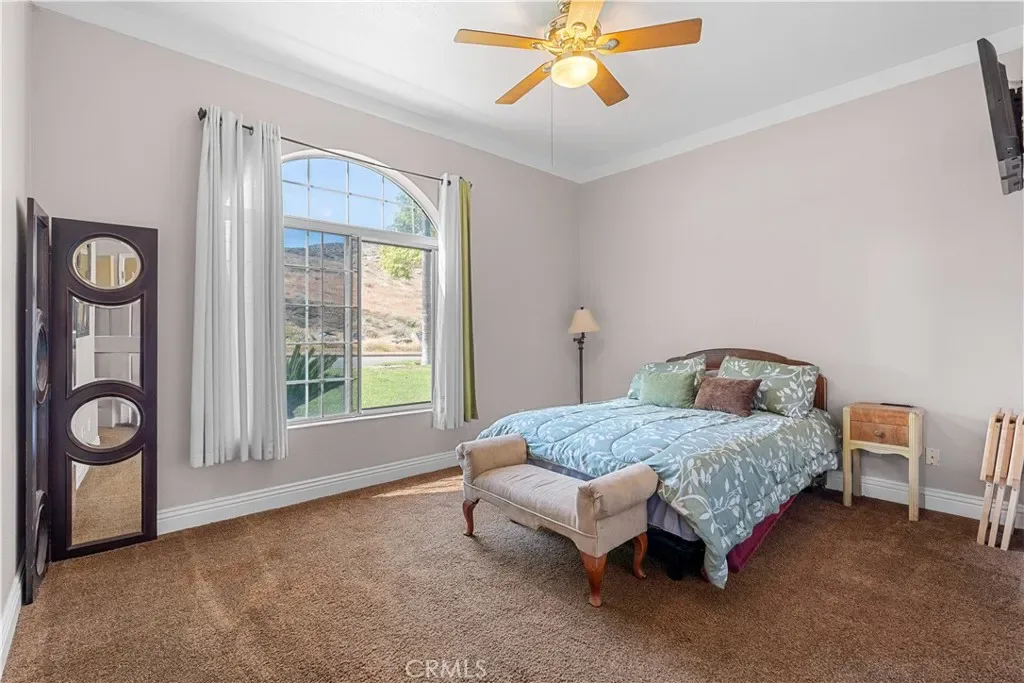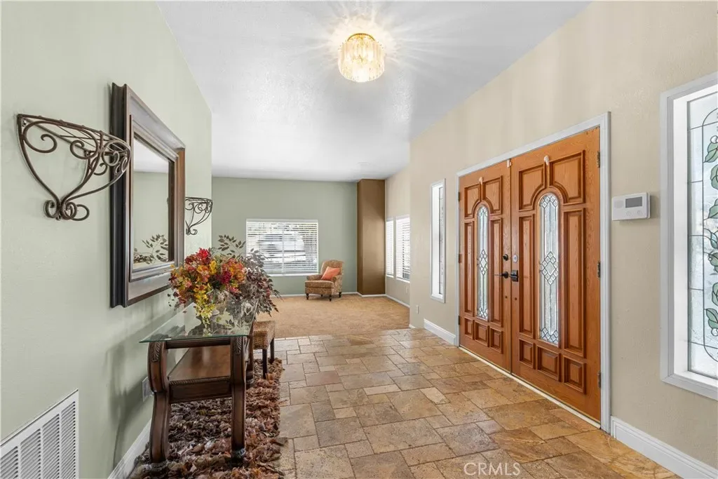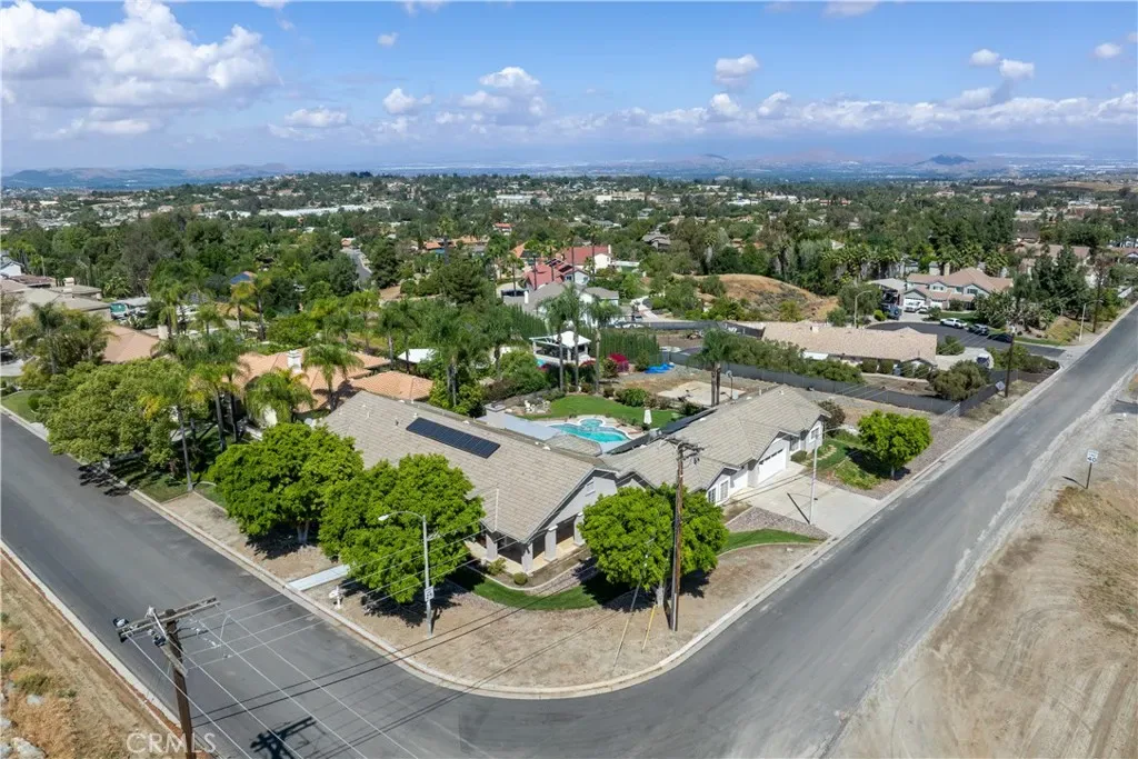 Set on a prominent corner lot in the highly sought-after Woodcrest community, this exceptional home boasts space, versatility, and timeless elegance. The main residence features 4 bedrooms and 3.5 bathrooms, including two expansive primary suites, two fireplaces, large bonus recreational room, formal living and dining room, and thoughtfully curated living spaces designed for both relaxed living and sophisticated entertaining. Updated kitchen includes new five-burner stove and overhead microwave along with newly installed dishwasher. Resort-style outdoor living awaits with a sparkling pool and spa, lush mature landscaping, mountain views, and an inviting wraparound porch that enhances the home’s stately presence and indoor-outdoor flow. Complementing the main home is a separate guest structure with its own private entrance and driveway parking, offering a bedroom, bathroom, kitchen, and living area with brand new tankless water heater. A dedicated laundry room is located within the main residence, while additional washer and dryer hookups are available in the garage adjacent to the guest structure, providing added convenience and flexibility. The property also includes a separate flat lot with gated street access, ideal for RV or boat parking, storage, or potential future enhancements such as a garage or workshop. Additional highlights include paid-off solar and an enviable location in one of Woodcrest’s most desirable neighborhoods. Ideal for multi-generational living. This is a rare opportunity to own a property that seamlessly blends privacy, functionality, and upscale living.