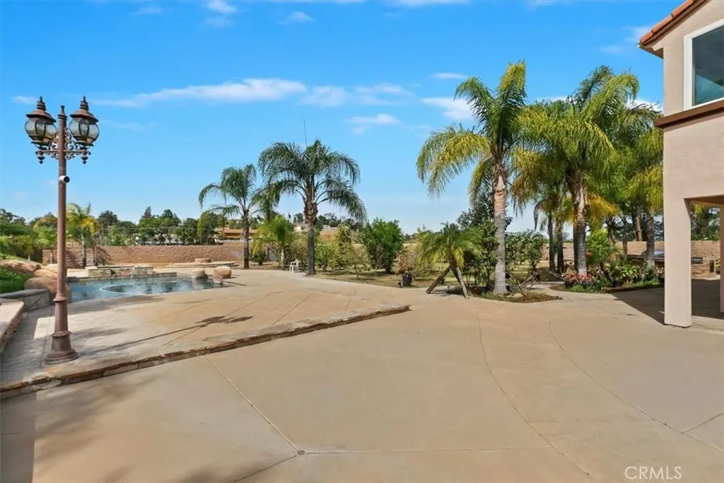 Stunning Creekside Estate in the community of Mockingbird Canyon. This turnkey residence offers 4,090 sq. ft. of living space, featuring 5 bedrooms and 4 bathrooms, all situated on 1.50 acres of beautifully maintained land. Double-door entry welcomes you into a striking interior with a tiled foyer enhanced by elegant granite inlays. The home showcases expansive formal living and dining rms. centered around a spectacular fireplace. A dramatic dual staircase adds architectural charm. Designed for comfort and flexibility, the home features two primary suites, including a desirable main-level suite complete with gorgeous wood flooring, a private slider leading to the backyard, and an ensuite bath with dual sinks, tub and shower combo, with a walk-in closet. The heart of the home is the expansive kitchen, offering granite countertops and backsplash, a large center island with breakfast bar, black appliances, and a walk-in pantry. The kitchen opens to the spacious family rm. highlighted by a cozy gas fireplace. Upstairs, the luxurious primary suite features double-door entry, a private sitting area, and an enclosed balcony for peaceful retreat. The spa-inspired ensuite bath includes granite counters, a Jacuzzi tub, separate shower, dual sinks, and two vanities. His & Her walk-in closets. Three additional generously sized guest bedrooms and a full hall bath complete the second level. This home is loaded with upgrades including plantation shutters, crown molding with detailed window casings, 6-inch baseboards, wainscoting, custom paint, ceiling fans, solar, and instant hot water. Step outside to your own private resort-style oasis. The backyard boasts an expansive Bogner pool and spa with a stunning waterfall, all remote-controlled with accent lighting. Enjoy outdoor living with a large built-in barbecue featuring a 48-inch grill, stamped colored concrete and a Bose outdoor sound system. The property is fully enclosed with split-face block walls and beautiful iron gates, offering both privacy and security. Additional features include gated RV parking, a 4-car garage with epoxy flooring, and an orchard with a wide variety of producing fruit trees including lemon, lime, jujube, guava, soursop, pomegranate, avocado, orange, peach, plum, grapefruit, sugarcane, loquat, and dragon fruit. Mature landscaping creating a serene and picturesque setting. This exceptional property truly reflects pride of ownership and offers the perfect blend of luxury & comfort.