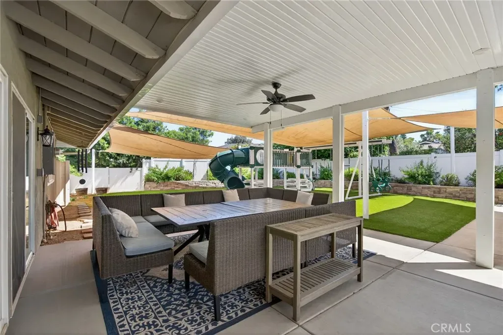 The outdoor grounds are a sanctuary of “FUN”ction and beauty. Professionally designed water-wise landscaping envelops the property, complemented by mid-century breezeway block walls in pristine condition. The custom Swing Kingdom Amish-designed playground, complete with premium turf with 2-inch padding and multiple heavy-duty Sail Shade coverings, create a haven for play AND safety. Stacked, mortarless planters brim with fragrant heirloom herbs like lavender and rosemary, adding a touch of garden elegance.