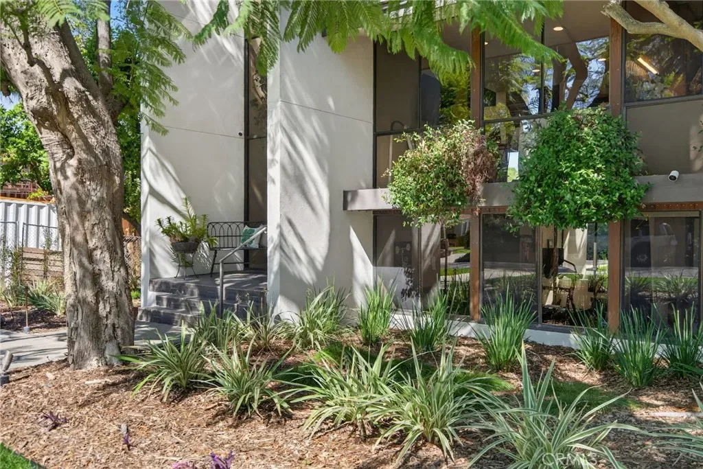 The remodeled kitchen is a chef’s dream, featuring sleek stone countertops, built-in appliances, and custom contemporary hardwood cabinetry. A private study or library, tucked behind a stylish sliding barn door, provides the perfect retreat for work or relaxation.