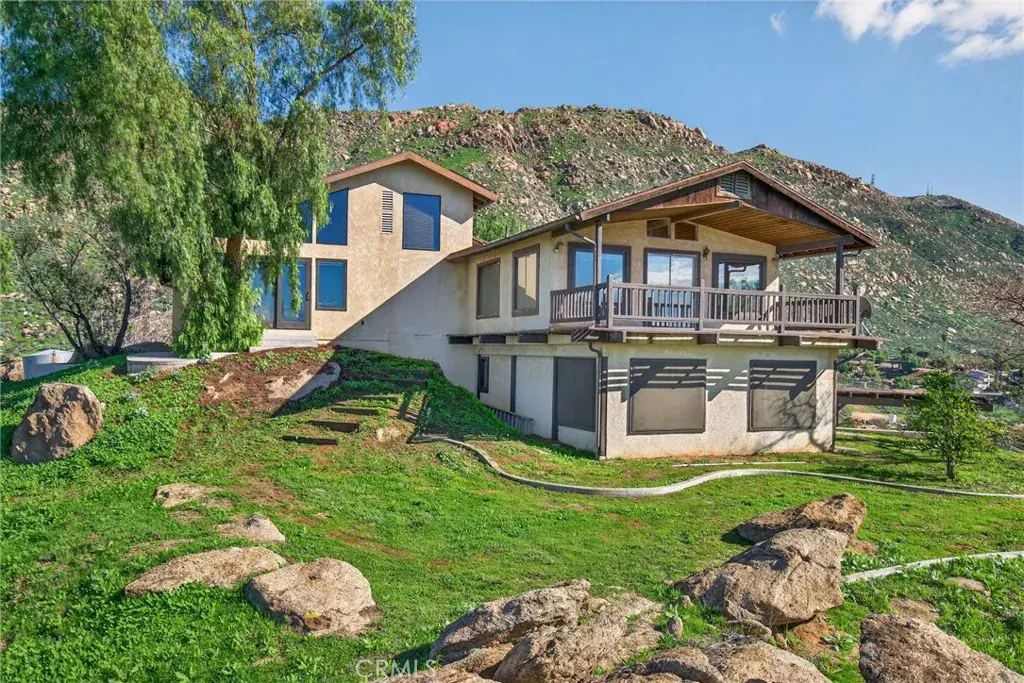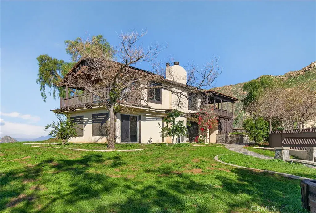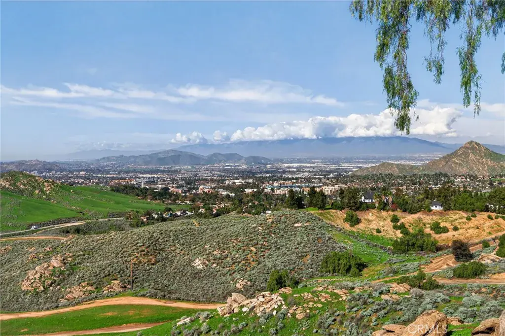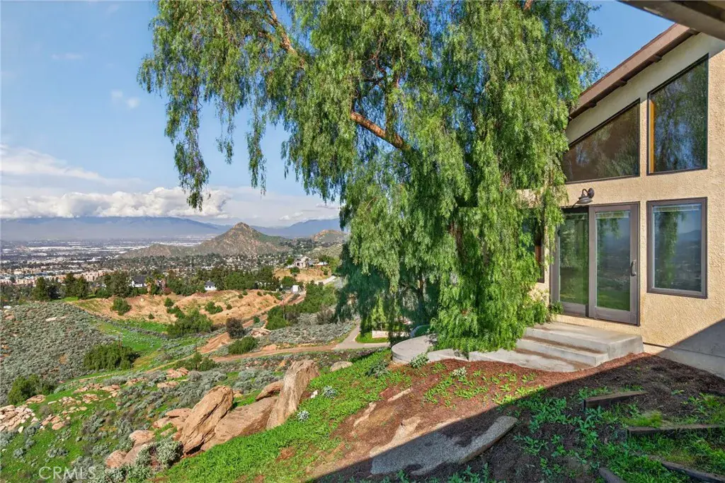 Imagine living in a serene hilltop custom-built home designed for luxury and modern convenience. Nestled in the Box Springs Mountain range, this home offers both privacy and expansive open living spaces. Perfect for those seeking off-the-grid living, this 12-plus-acre paradise offers the perfect blend of self-sufficiency and connection with two wells, solar panels, and two septic systems. Plus, you’re connected to electricity with the public utility providing extra peace of mind. Step inside to discover exquisite hardwood flooring and broad windows that flood the space with natural light and showcase breathtaking panoramic views. The vaulted natural wood ceilings in the living spaces provide a spacious atmosphere. There are two main living rooms, which both offer places for entertaining, dining, and enjoyment of this hill top paradise. The dining and living rooms boast unparalleled views of Mount Baldy, creating a mesmerizing backdrop for every meal and moment. Picture yourself relaxing on the living room balcony, taking in the stunning west-facing vistas of the mountains and twinkling city lights. With two bedrooms upstairs and a primary suite downstairs, this home provides fantastic flexibility for any lifestyle. The lower bedroom in the main home could easily be converted into a JR ADU, offering great potential for multi-generational living or additional revenue. Additionally, the property features a detached ADU which sits over the two-car garage. Also home has a half-court basketball court. The ADU has its own living area, kitchen, bedroom, and bathroom (450 sq ft +/-)—a fabulous bonus for guests or potential rental income. Zoned as R1, there’s potential to subdivide the property for future investment or development opportunities. This hilltop retreat is your chance to experience the best of both worlds—secluded, self-sustaining living with the comfort and connection of modern amenities. Don’t miss out on this unique opportunity to call this remarkable property your home.