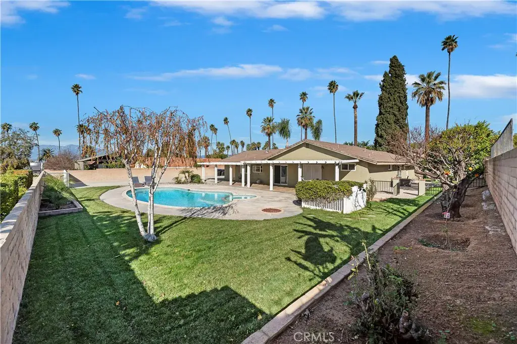 Located in the prestigious Hawarden Hills neighborhood of Riverside, this single story pool home offers a blend of classic charm and modern updates across 1834 square feet of living space. This single story floorplan features 3 spacious bedrooms and 2.5 bathrooms on an expansive 14,375 sq. ft. lot. Recently remodeled in 2022 showcasing a gourmet kitchen with custom cabinetry, granite countertops, stylish backsplash, and recessed lighting, large windows provide a scenic view of the lush back yard and pool. A formal living room and separate formal dining room provide ample space for entertaining. The cozy family room is anchored by an elegant fireplace. This home is equipped with double-pane windows, crown molding, ceiling fans and a separate individual laundry room. The back yard is built for entertainers with a private oasis featuring a sparkling in-ground pool and spa. Outdoor amenities include a large Alumawood patio cover, grassy areas, new pool equipment, and mature orange trees. The two car attached garage is built out and includes extra storage, plus a wide driveway with significant room for RV and boat parking and 220 hookups. This home is situated just off historic Victoria Avenue, providing easy access to the 91 freeway, steps away from walking trails along the Gage cannel, and within walking distance of high preforming schools in the Riverside Unified School District (Poly High School District, Gage Middle School, Washington Elementary) and close to all local shopping and dining. All that’s missing is you!