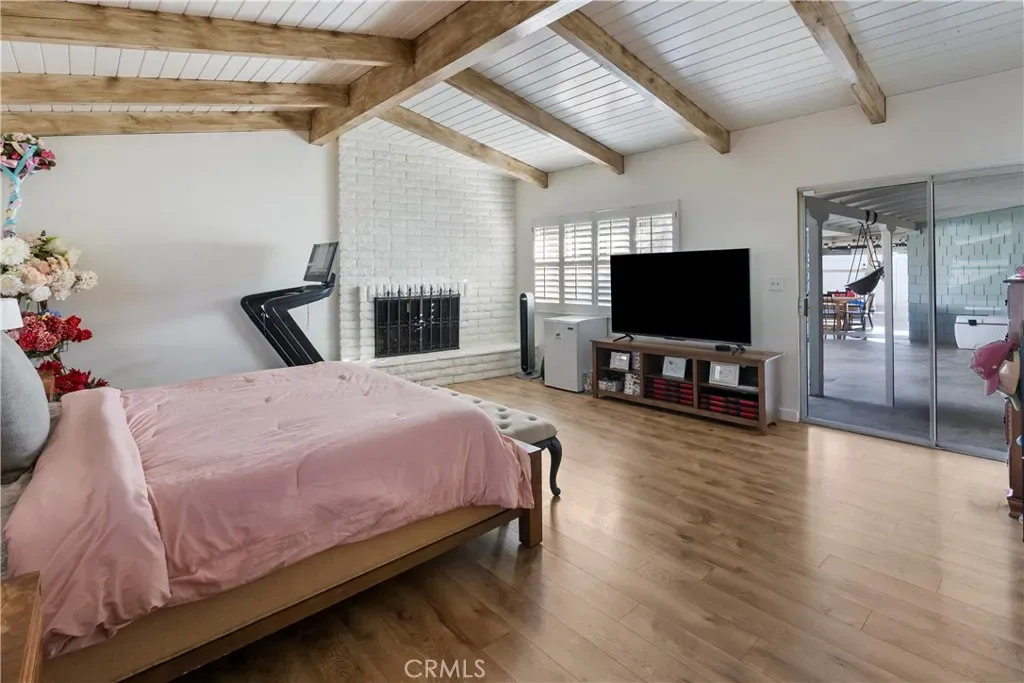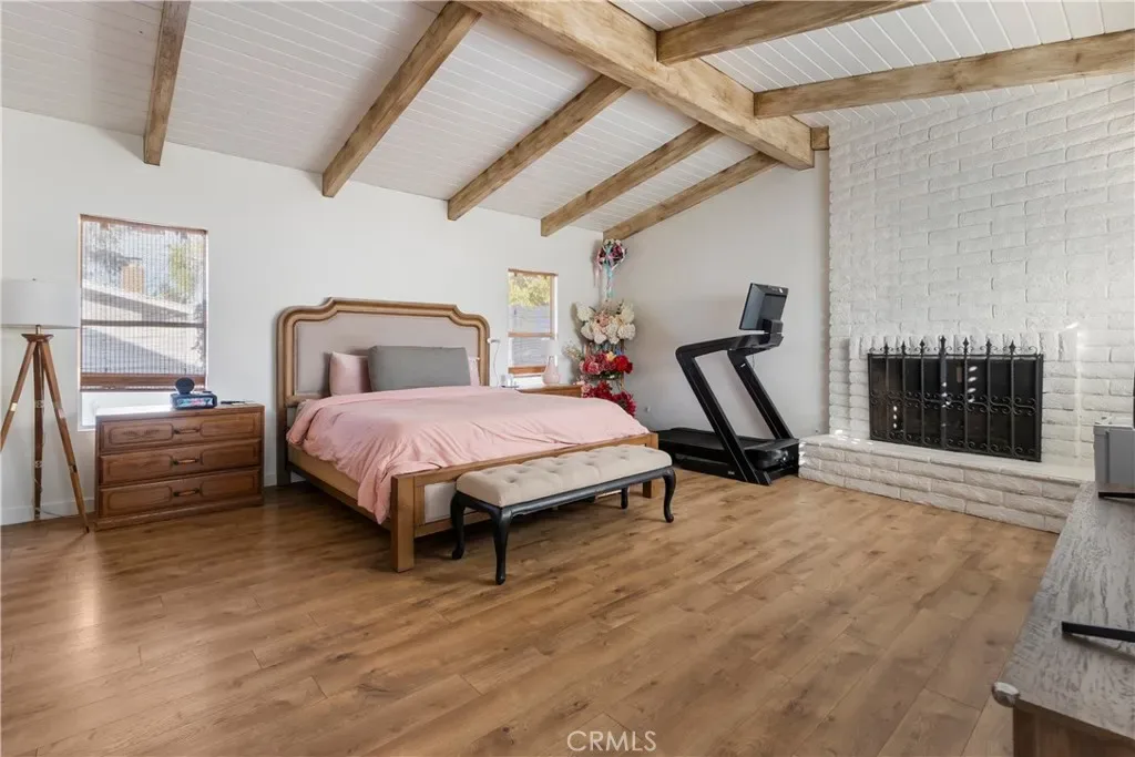 Three bedrooms are conveniently located on the main level, including a private primary retreat featuring soaring, beamed ceilings and a cozy fireplace. Upstairs, you’ll find an additional bedroom with its own full bathroom—perfect for guest quarters, a home office, or a teen hangout with endless possibilities.