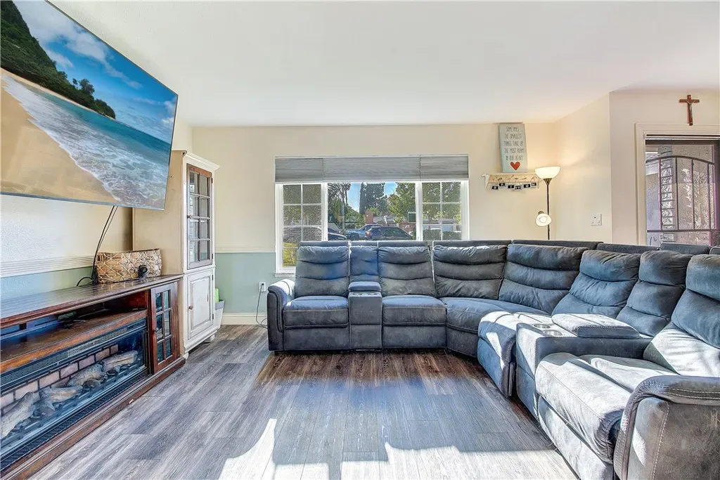 Beautiful single-family home featuring 3 bedrooms, 2 bathrooms, and 1,533 sq ft of comfortable living space. Remodeled kitchen showcases granite countertops, stainless steel appliances, abundant cabinetry, and a charming bay window that fills the space with natural light. Newer wood-look vinyl flooring flows throughout the home, complemented by ceiling fans for added comfort. Major updates include newer A/C, FAU, and water heater, along with dual-pane windows. Both bathrooms have been updated with newer vanities, modern shower enclosures, and a newer shower door in the primary bath. Step outside to a private backyard with a fenced pool—perfect for relaxing or entertaining. Part of garage has been converted to a work out room. Close to schools, shopping and freeways. Eligible for $10,000 forgivable loan (no payments, no interest) to cover closing costs, rate buy-down and/or down payment. 100% financing available with NO MI.