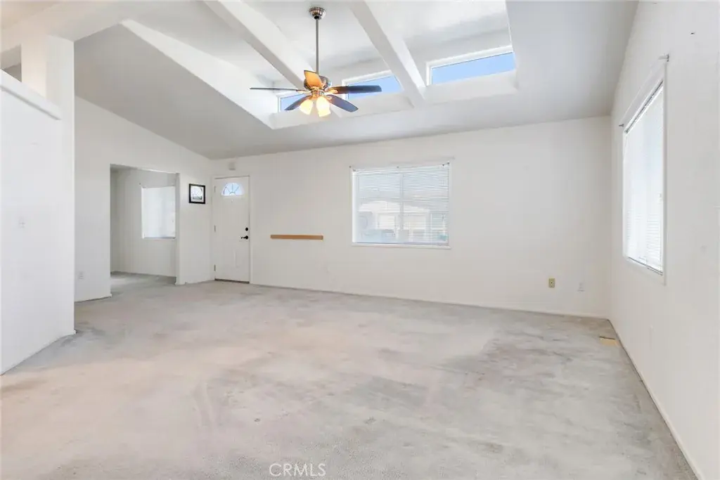 Welcome to this turnkey gem in the highly sought-after Villa Magnolia 55+ gated community. This beautifully maintained home features a chef’s kitchen with barstool seating, abundant storage, laminate countertops, and a custom pull-out pantry. The open-concept layout flows seamlessly into the cozy dining and living area, making it perfect for entertaining or hosting family gatherings. Enjoy neutral paint, multiple skylights, recessed lighting, window blinds, and ceiling fans throughout. The oversized primary suite offers a ceiling fan, mirrored closet doors, and an en-suite bathroom with a dual-sink vanity, a walk-in shower, and additional storage. A comfortable guest bedroom and full guest bathroom with a tub/shower combo provide space for visitors. Added highlights include a separate bonus office/library space, an indoor laundry room, a covered 2 car covered carport and a low maintenance yard with attractive landscaping. Ideally situated on a desirable corner lot, this home offers extra peace and comfort. Community amenities include, gated entry, a sparkling pool, RV parking, and a clubhouse with a fitness center and more. This is 55+ living at its best — schedule your private showing today!